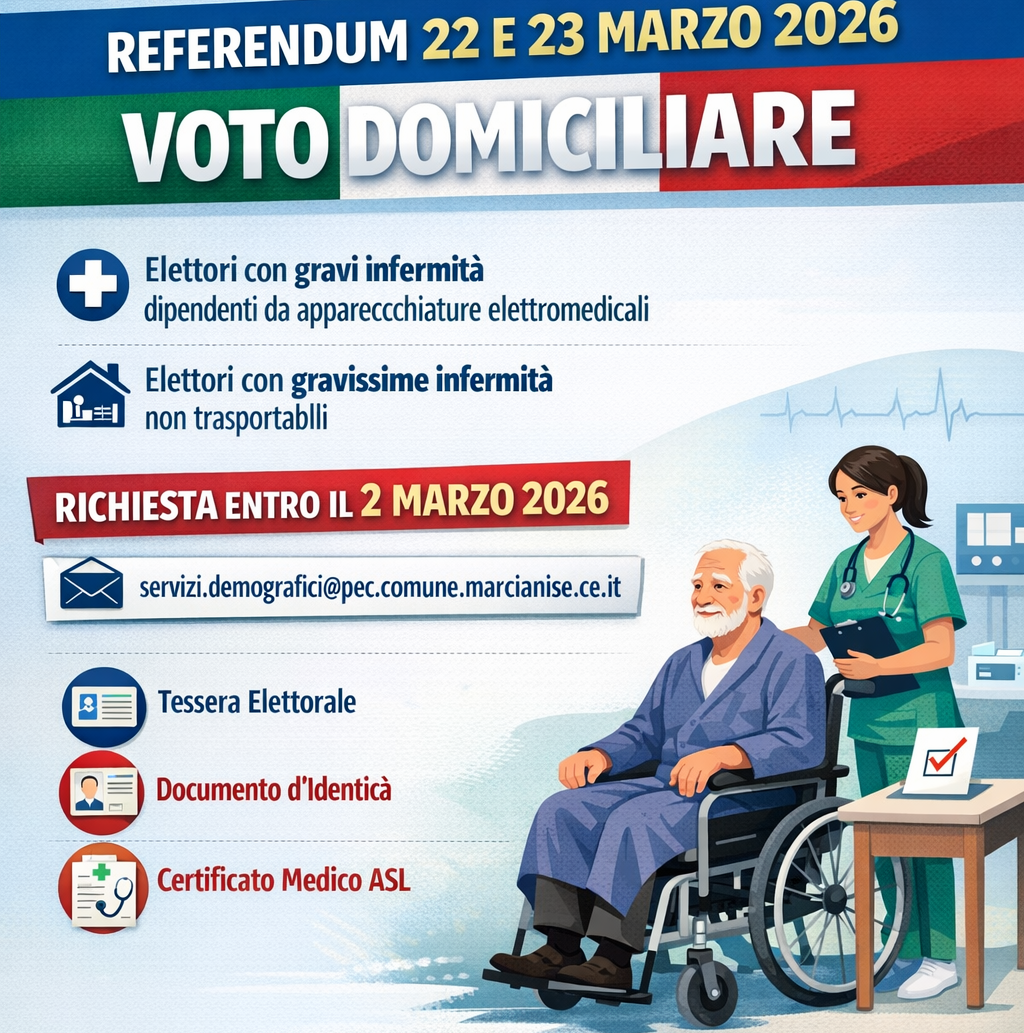 Si informa che, in occasione del Referendum del 22 e 23 marzo 2026, è possibile richiedere l’ammissione al voto domiciliare.