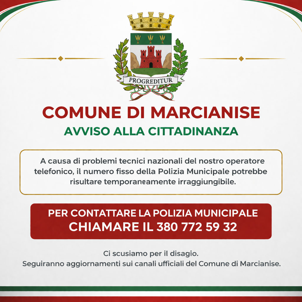 Ci scusiamo per il disagio e assicuriamo che seguiranno ulteriori aggiornamenti tramite i canali ufficiali del Comune di Marcianise.