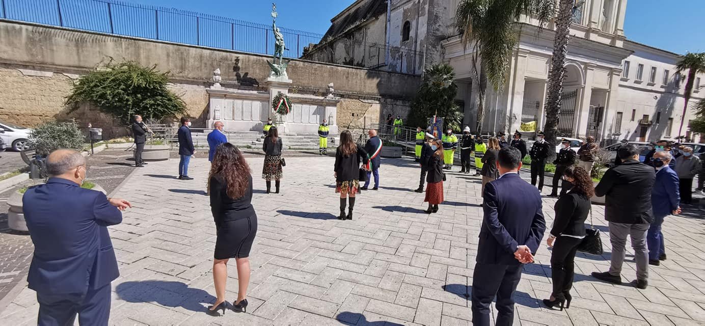 76° Anniversario della Liberazione d'Italia. Deposta la corona d'alloro al Monumento ai caduti di Piazza O. Buccini.