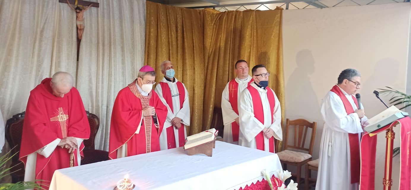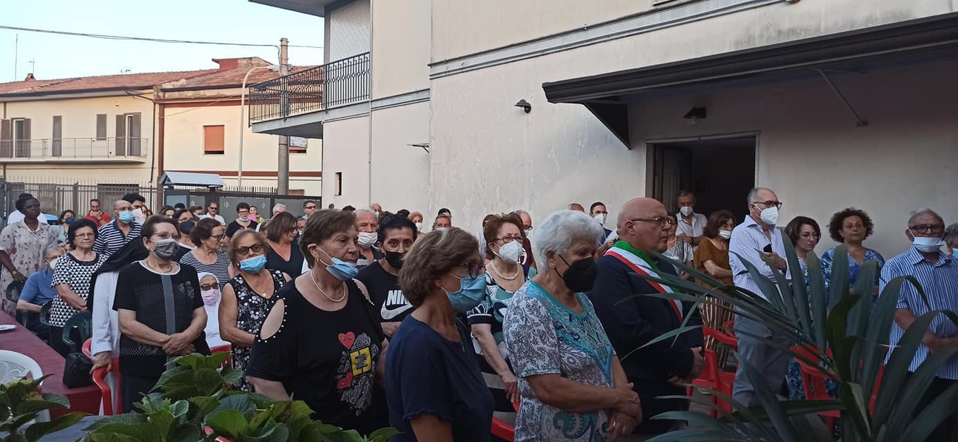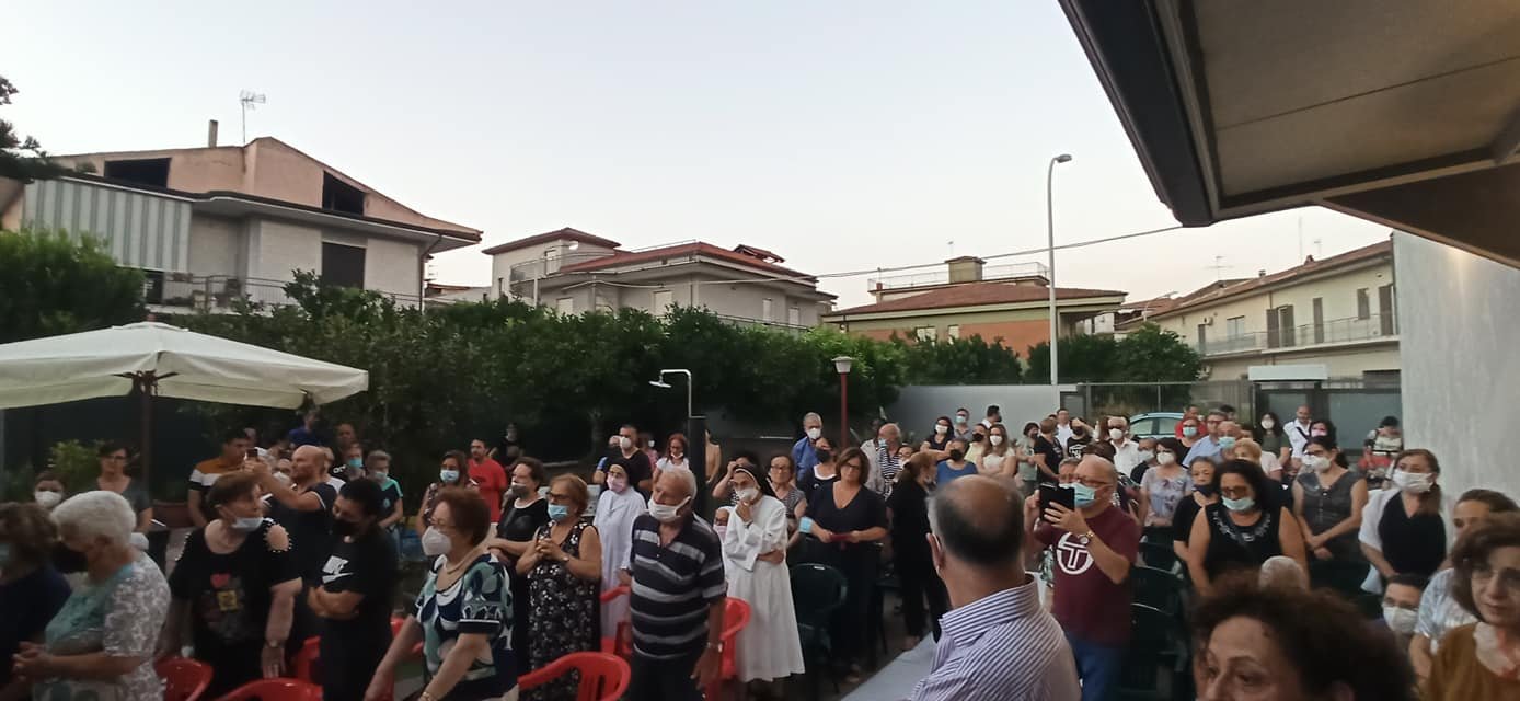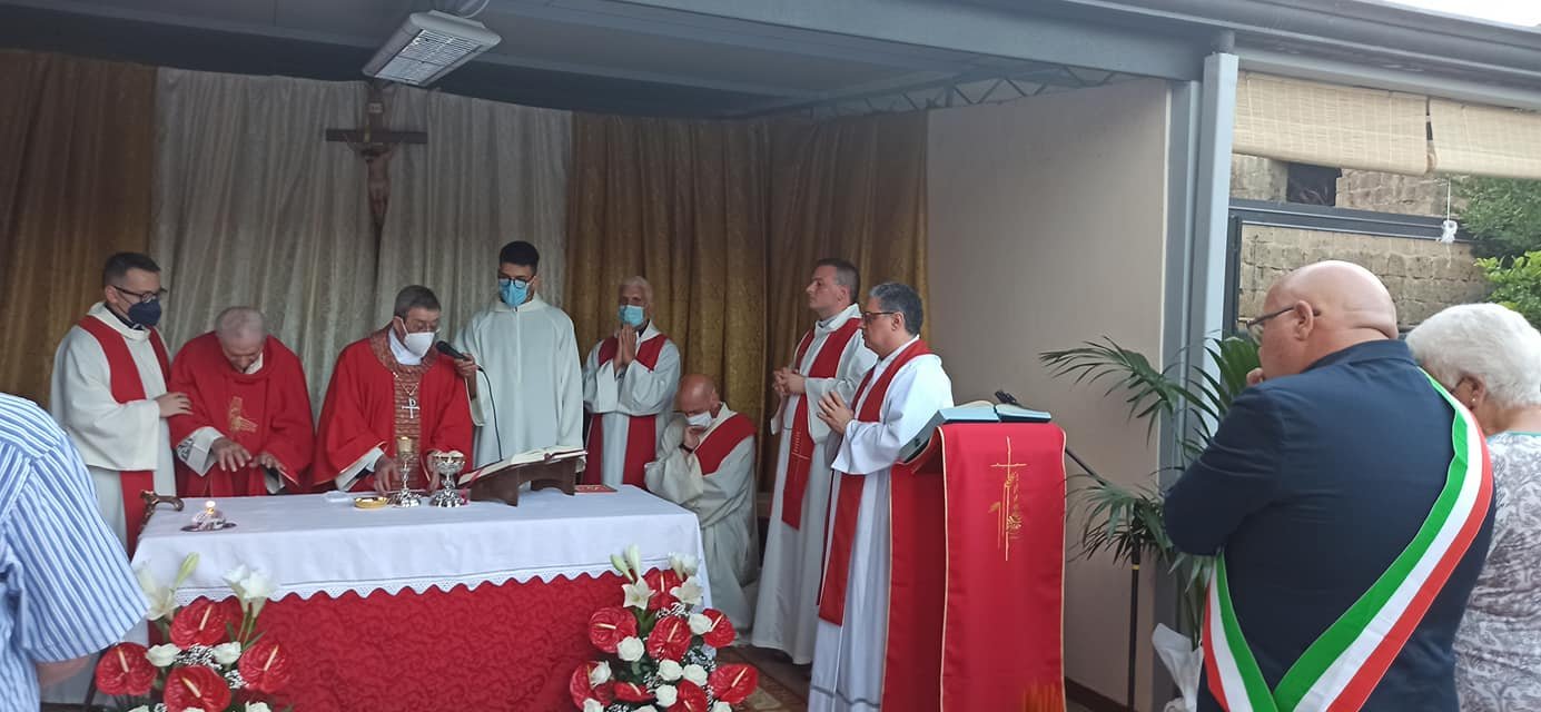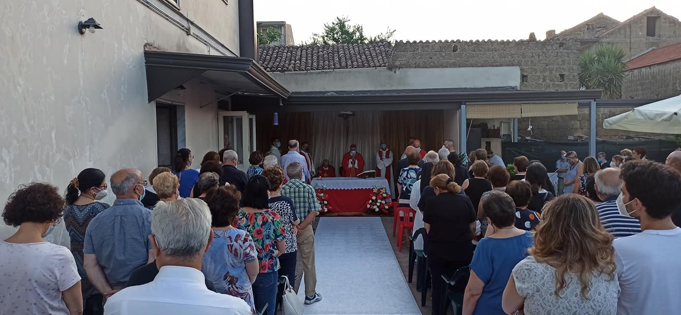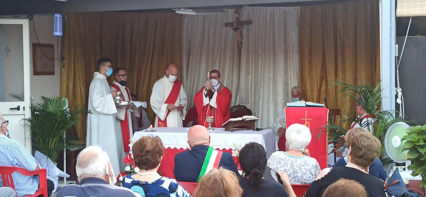 A celebrare la messa nel cortile della sua abitazione in via Romaniello a Marcianise S.E. Monsignor Salvatore Visco, Arcivescovo di Capua, con diversi sacerdoti, alla presenza di centinaia di parrocchiani e cittadini.