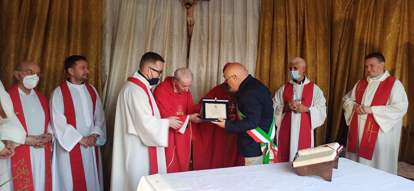 Il sindaco Antonello Velardi ha consegnato una targa di riconoscimento in rappresentanza dell'Amministrazione Comunale al carissimo don Vincenzo con vivissima riconoscenza e gratitudine per la sua encomiabile azione pastorale e per l'instancabile attività sociale e civile, volta alla crescita in particolare delle nuove generazioni, portata avanti negli anni del suo sacerdozio.