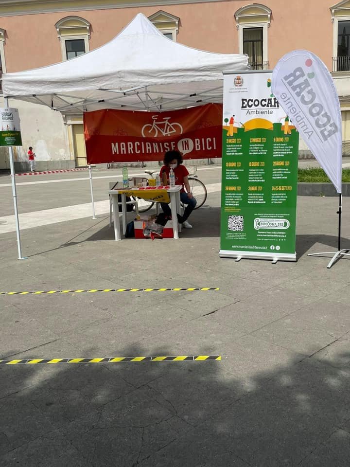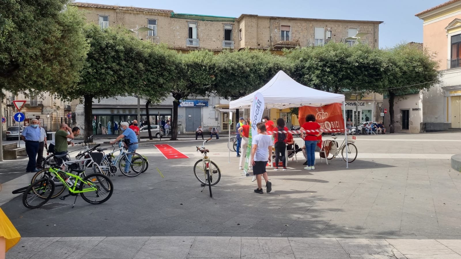20 GIUGNO 2021 - Appuntamento in Piazza Umberto I con l’associazione 'Marcianiseinbici' tra biciclette, rastrelliere e simulazione di una pista ciclabile per lanciare un messaggio: la bicicletta è al centro della mobilità sostenibile.
