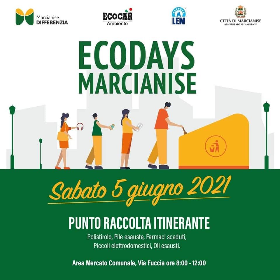 Terzo incontro di #EcodaysMarcianise: un’intera mattinata dedicata alla sensibilizzazione verso il corretto smaltimento dei rifiuti. A sostegno dell’ambiente e della raccolta differenziata, è stato allestito un Ecopunto itinerante dedicato al conferimento di: pile esauste, polistirolo, piccoli elettrodomestici, indumenti, medicinali scaduti, oli esausti ecc.