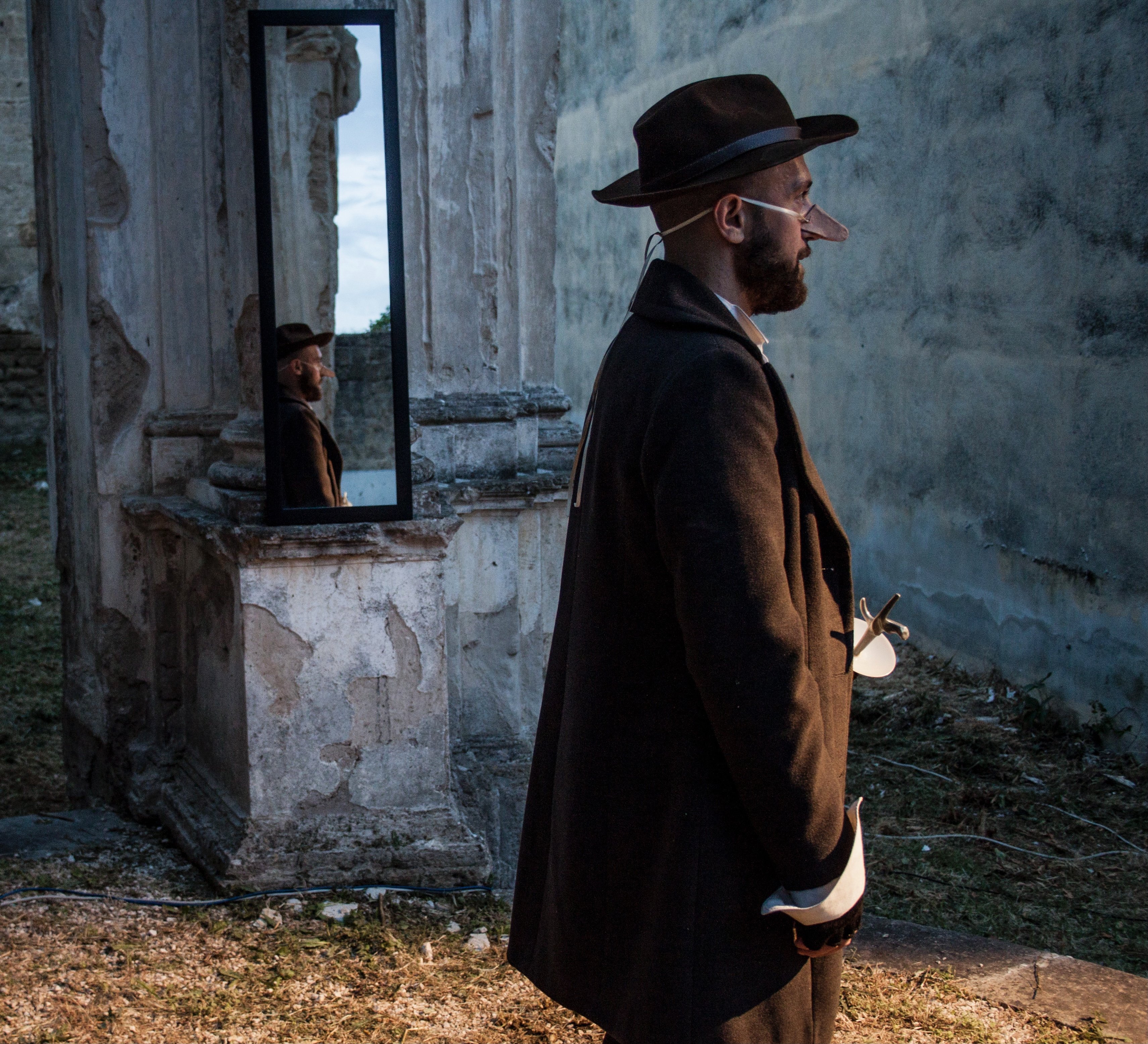 Raffaele Patti che ha portato in scena l’opera dal titolo “Cyrano - unplugged in Esedra” riportando alla luce i resti architettonici dell’Esedra di Palazzo Novelli, il suggestivo teatro a cielo aperto risalente al XVIII secolo.