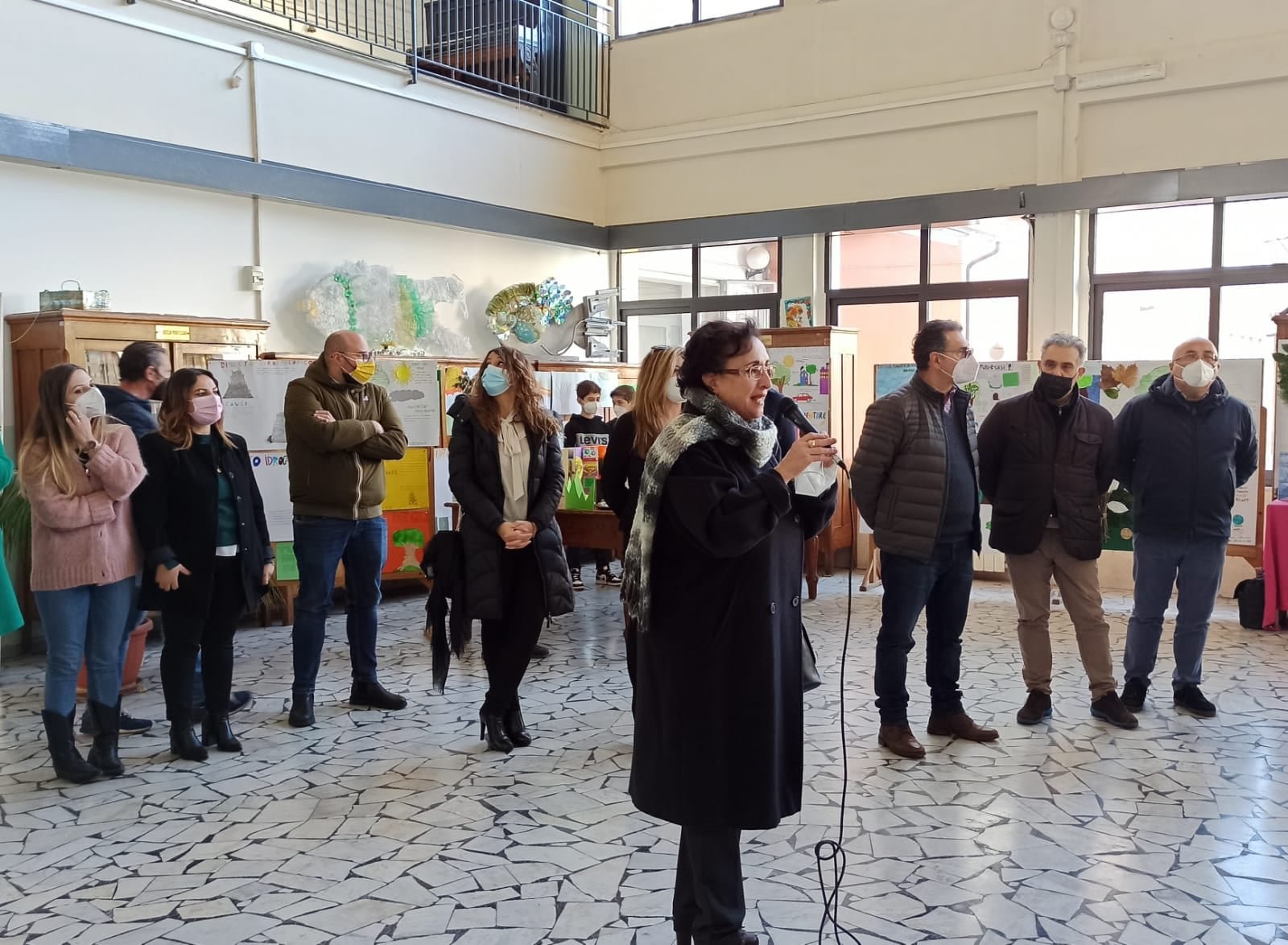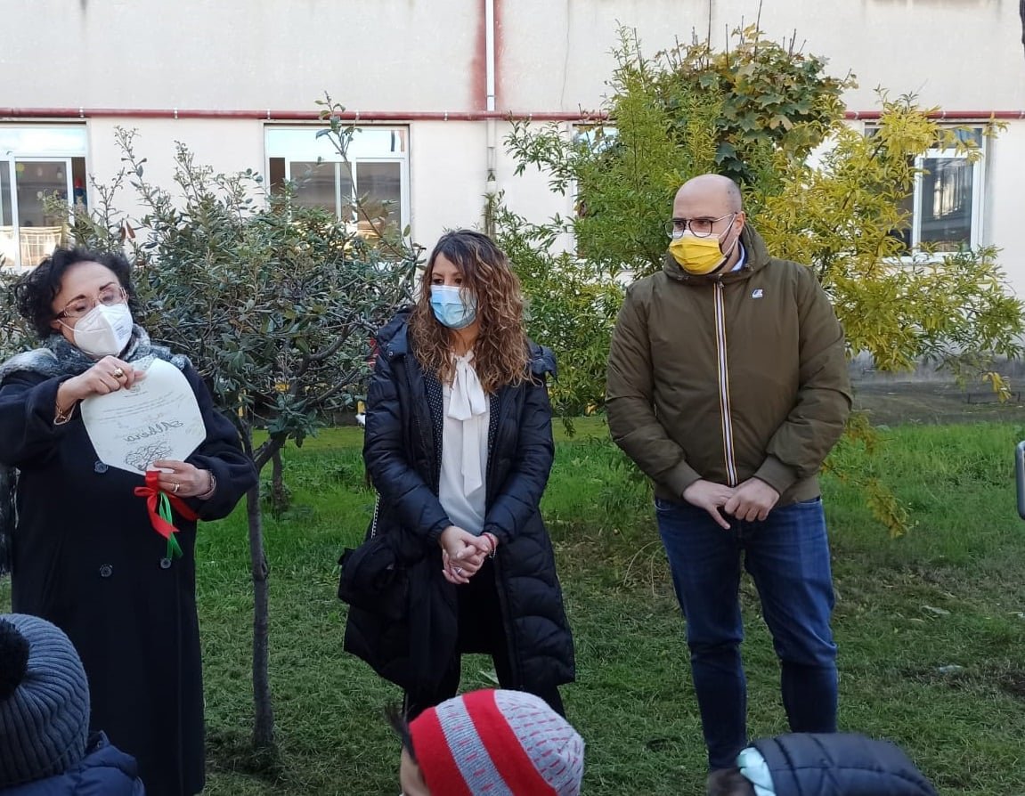 La delegazione del Comune di Marcianise ha donato alla dirigente scolastica Michelina Ambrosio, in segno di riconoscenza per l’impegno che ogni giorno la Scuola porta avanti nella formazione delle nuove generazioni, una pergamena dal valore simbolico, con una frase della poetessa Alda Merini: ‘Pensa che in un albero c'è un violino d'amore. Pensa che un albero canta e ride. Pensa che un albero sta in un crepaccio e poi diventa vita’.