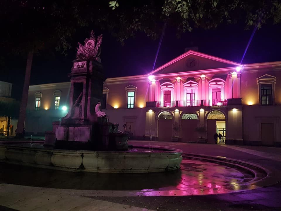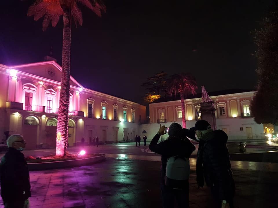 16 GENNAIO 2021 - E' stata colorata di rosa la facciata del municipio in Piazza Umberto I, a supporto della candidatura dell'isola di Procida a Capitale della Cultura.
