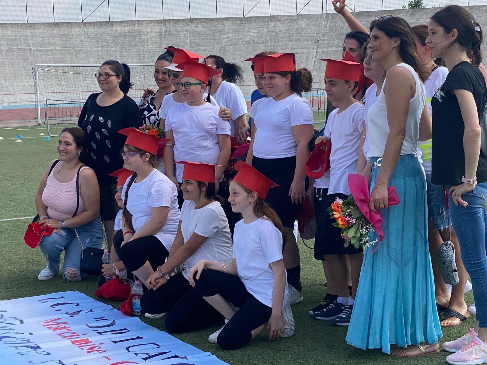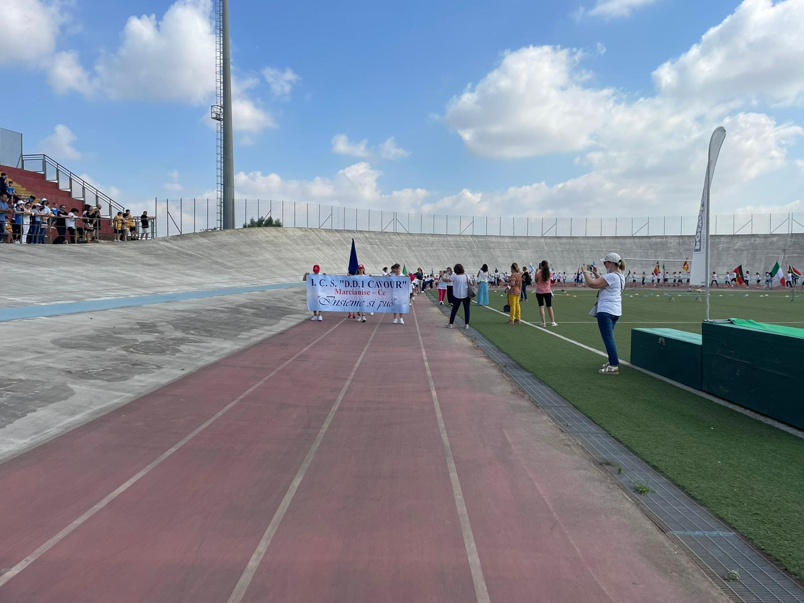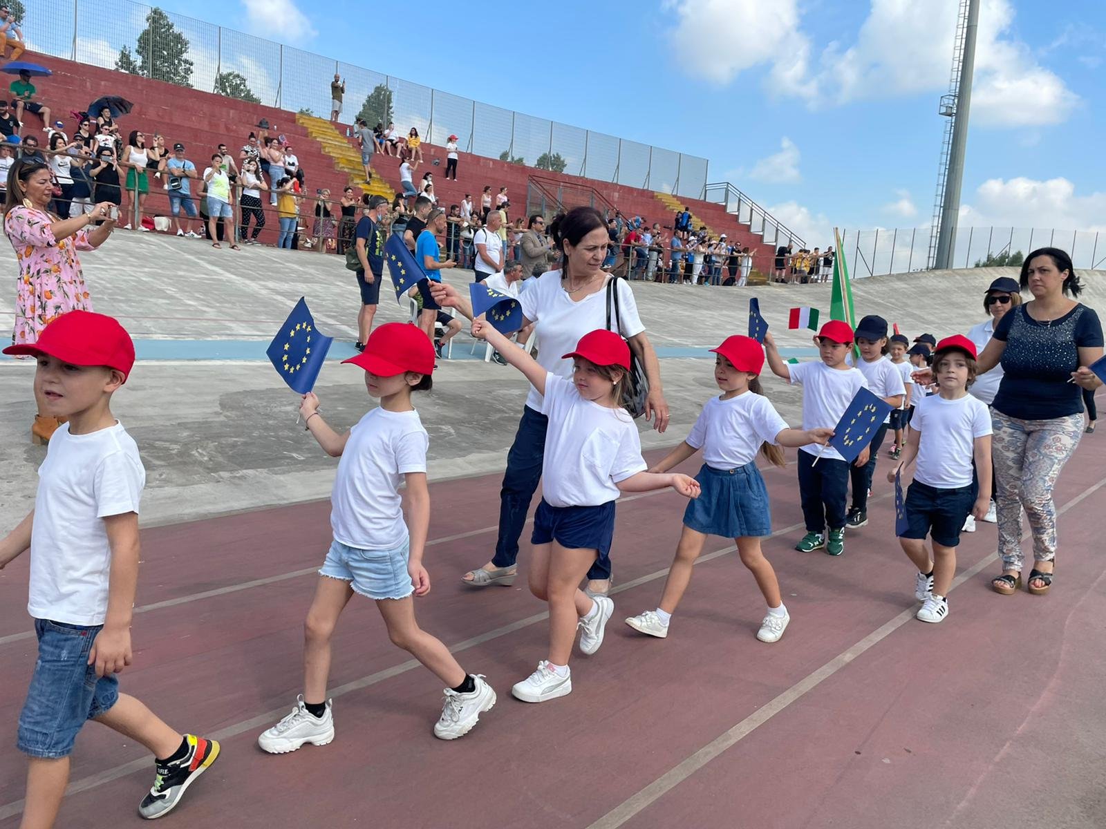 La manifestazione è partita da Piazzale Aldo Moro ed è proseguita verso Piazza Umberto I, dove c’è stata una breve sosta, per poi raggiungere il Velodromo dove gli alunni delle quinte classi della scuola primaria, i bambini della scuola dell’Infanzia e il corpo Majorette della Scuola secondaria di I° grado si sono esibiti in performance canore e danzanti per salutare, insieme al Dirigente Aldo Improta, al personale scolastico, ai rappresentanti dell’Amministrazione Comunale, gli Assessori Giovanna Cirillo, Giuseppe Golino e Giovanna Iadicicco, alle Associazioni e ai genitori, la fine dell’anno scolastico.