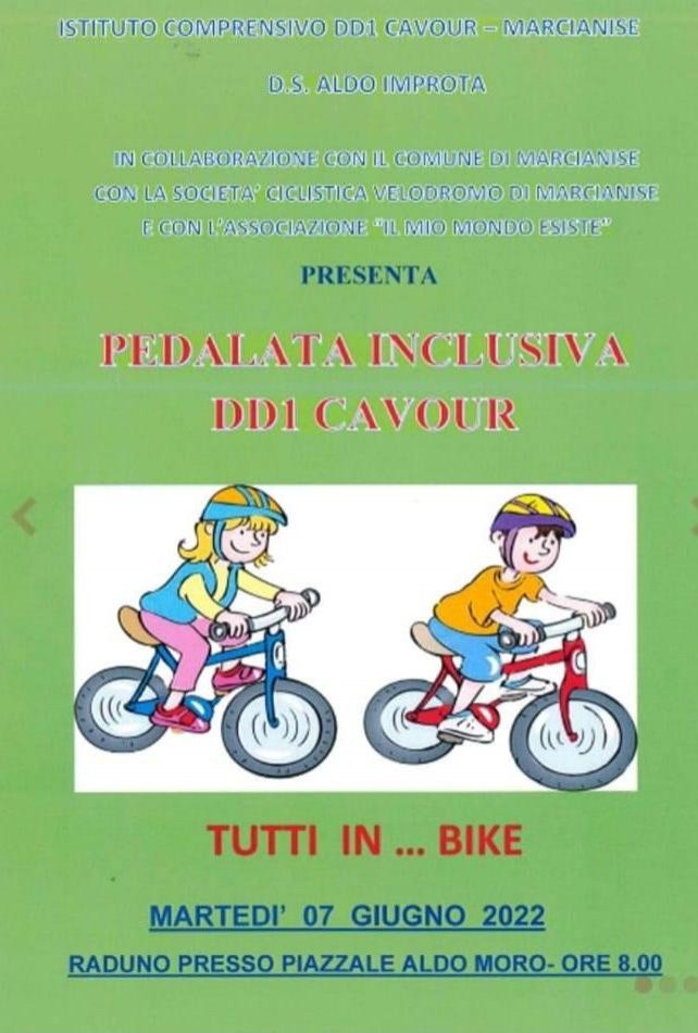 Questa mattina, martedì 7 giugno, si è svolta lungo le strade cittadine la ‘Pedalata Inclusiva’, manifestazione organizzata dall’Istituto Comprensivo DD1 Cavour, patrocinata dal Comune di Marcianise, in collaborazione con la Società Ciclistica Velodromo di Marcianise e l’Associazione ‘Il mio mondo esiste’.