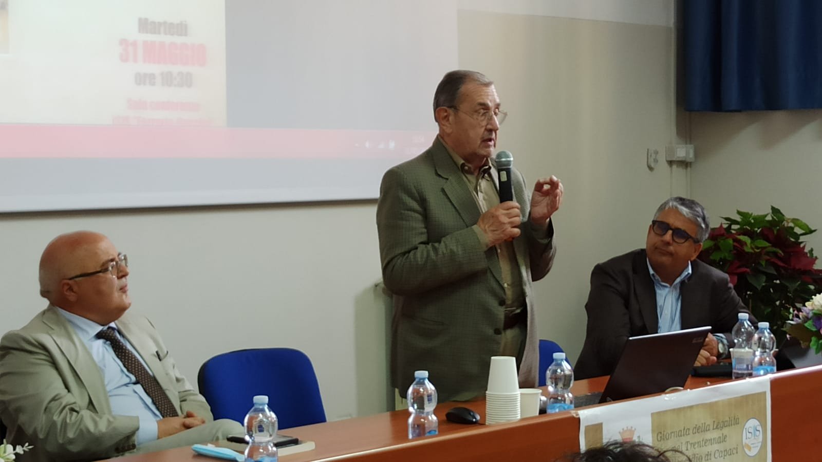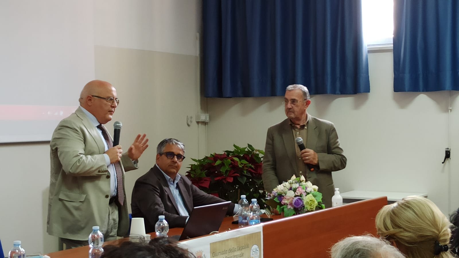 Il Preside Domenico Caroprese e il Sindaco Antonello Velardi hanno parlato agli studenti ricordando il ruolo delle Istituzioni e di ogni singolo cittadino nell’affermazione dei valori della Legalità. Il dibattito è stato moderato dal giornalista Angelo Agrippa.