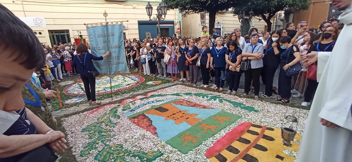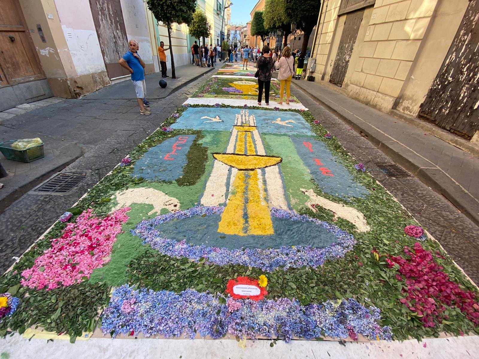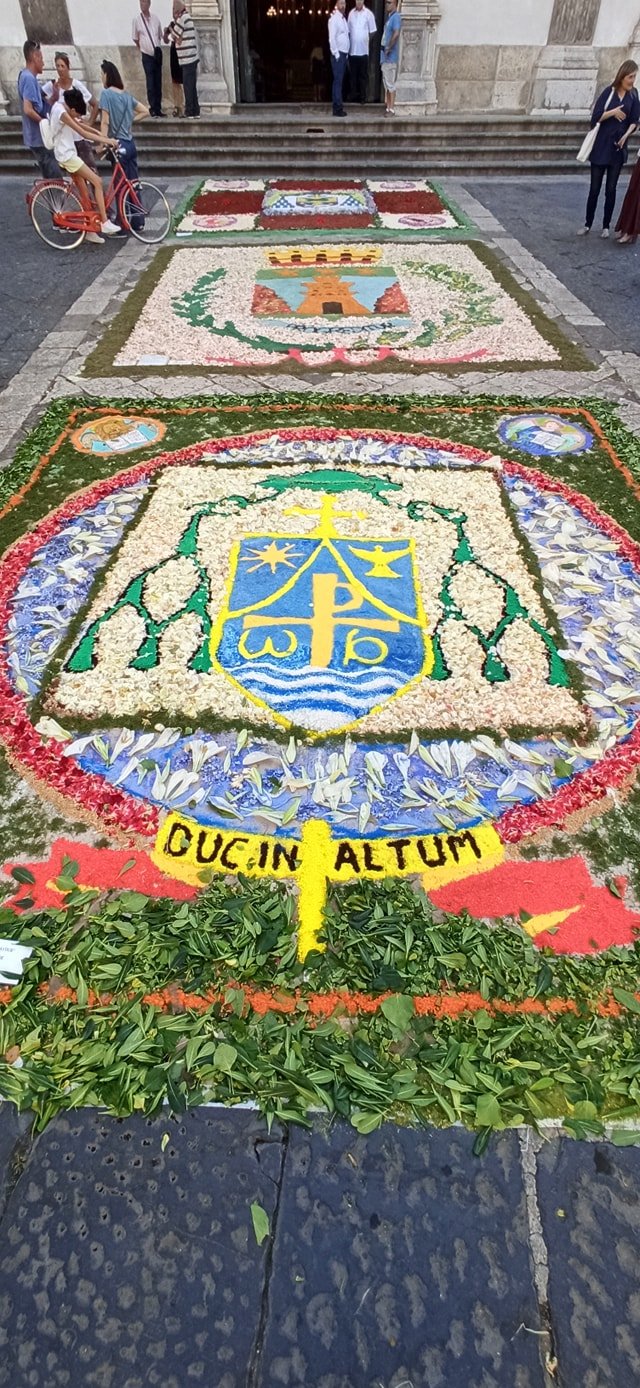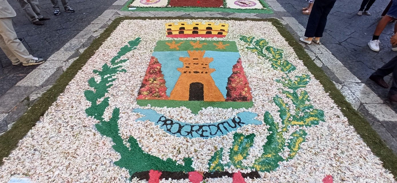 Ad arricchire la cerimonia la splendida infiorata sul sagrato del Duomo e lungo la stessa via Duomo, promossa da associazioni, istituti scolastici e singoli artisti locali.