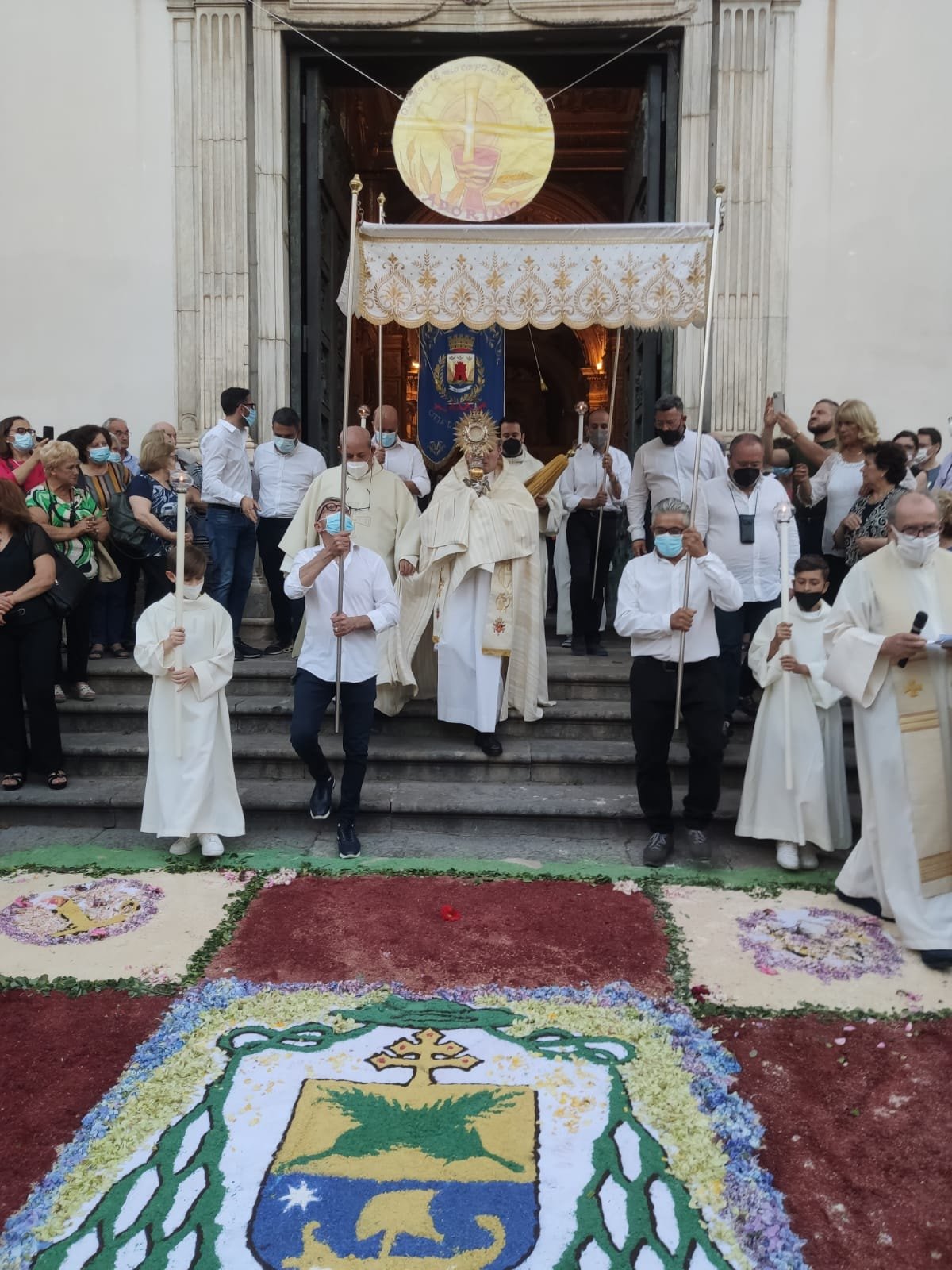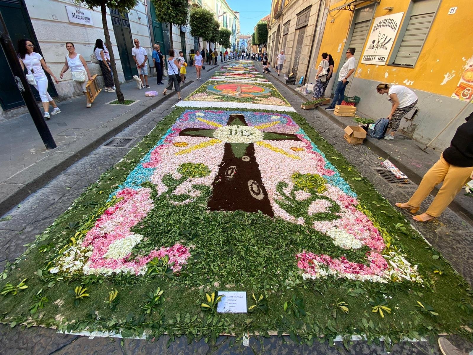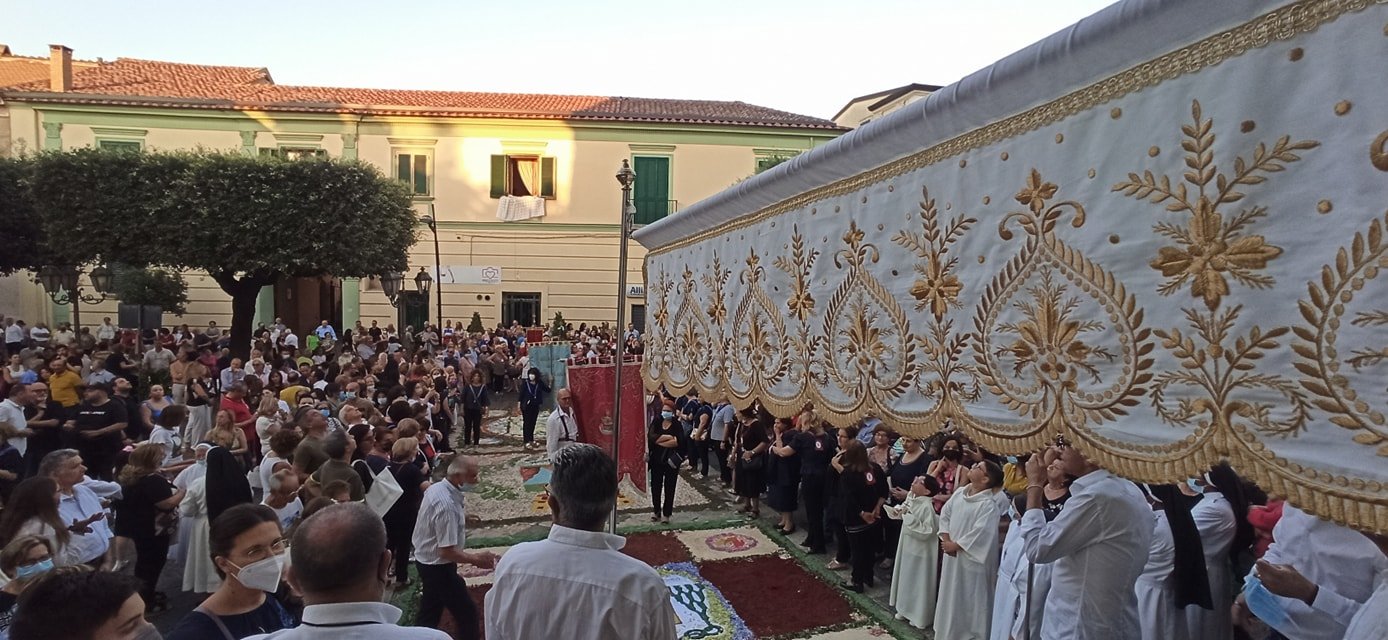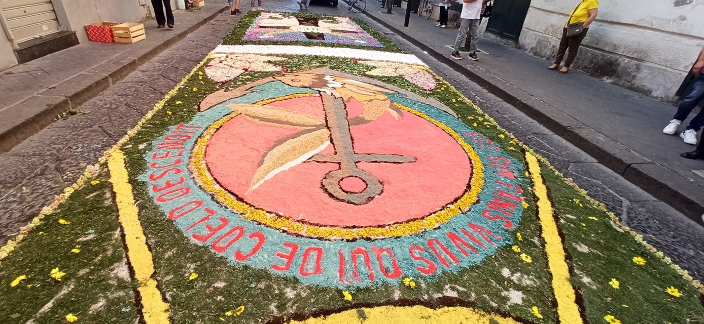 Ad arricchire la cerimonia la splendida infiorata sul sagrato del Duomo e lungo la stessa via Duomo, promossa da associazioni, istituti scolastici e singoli artisti locali.