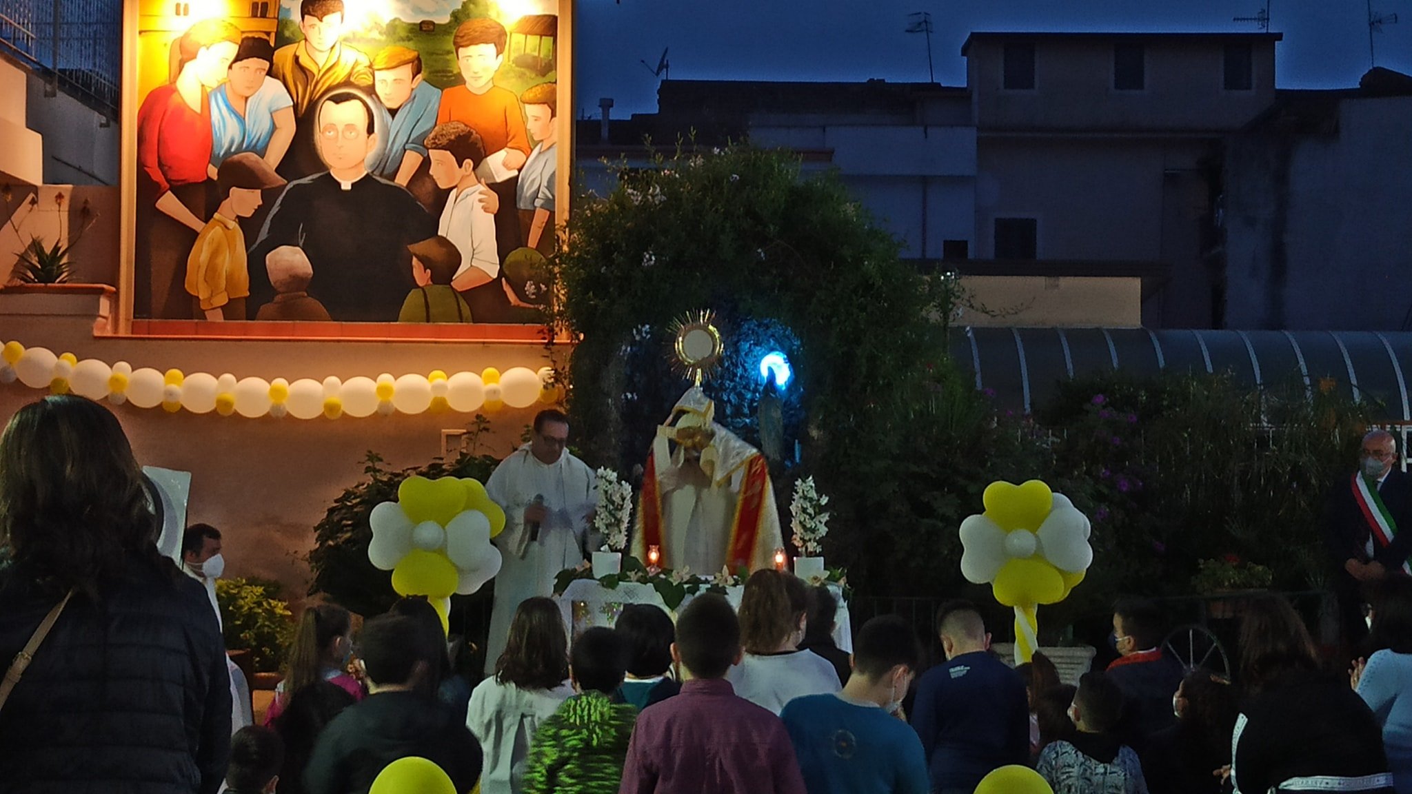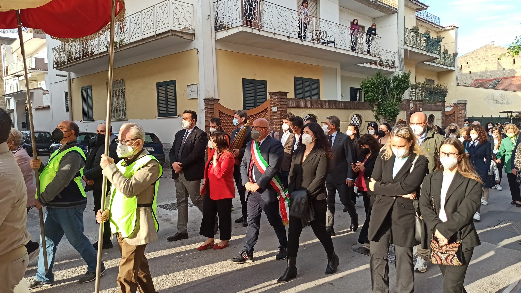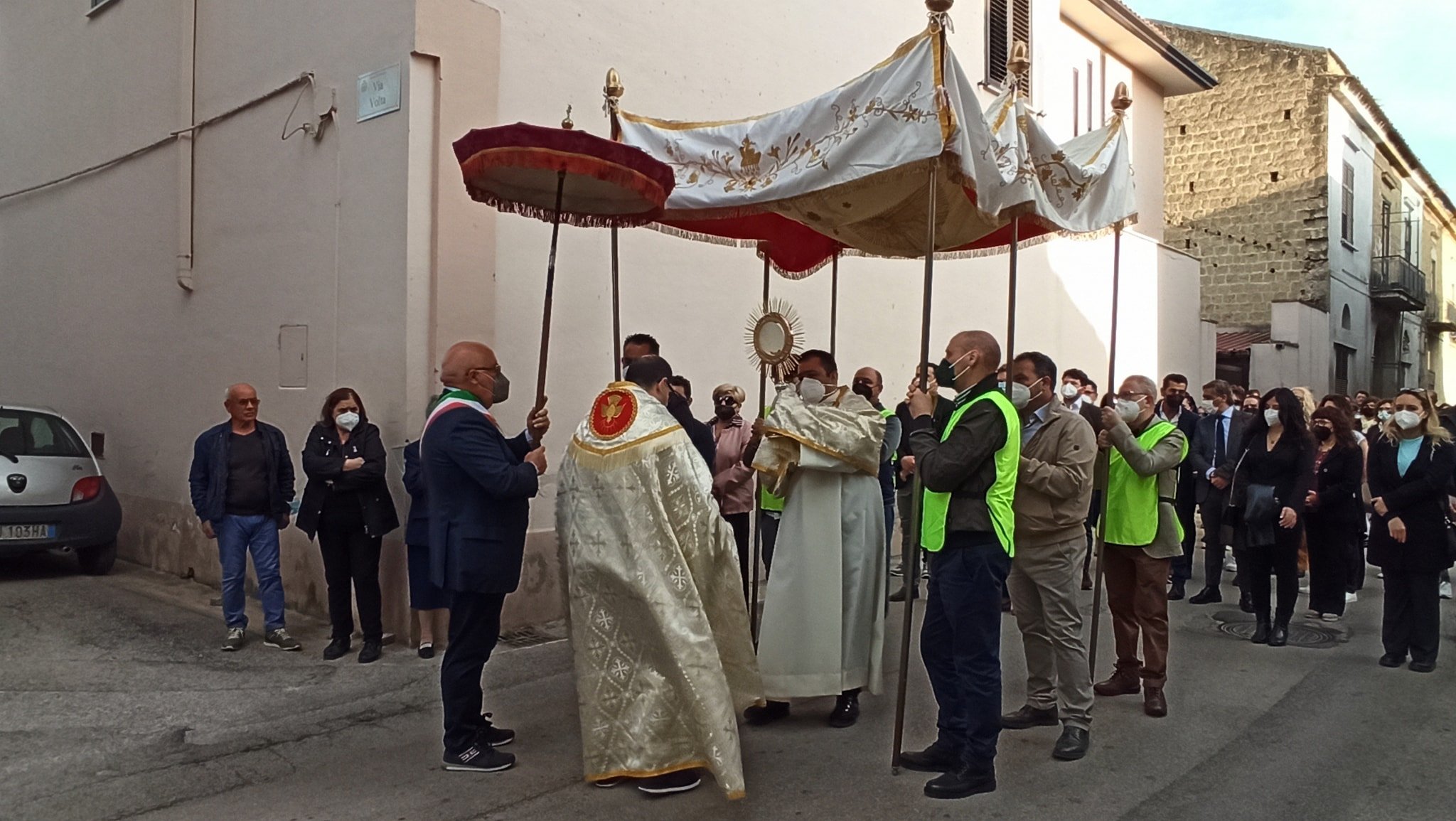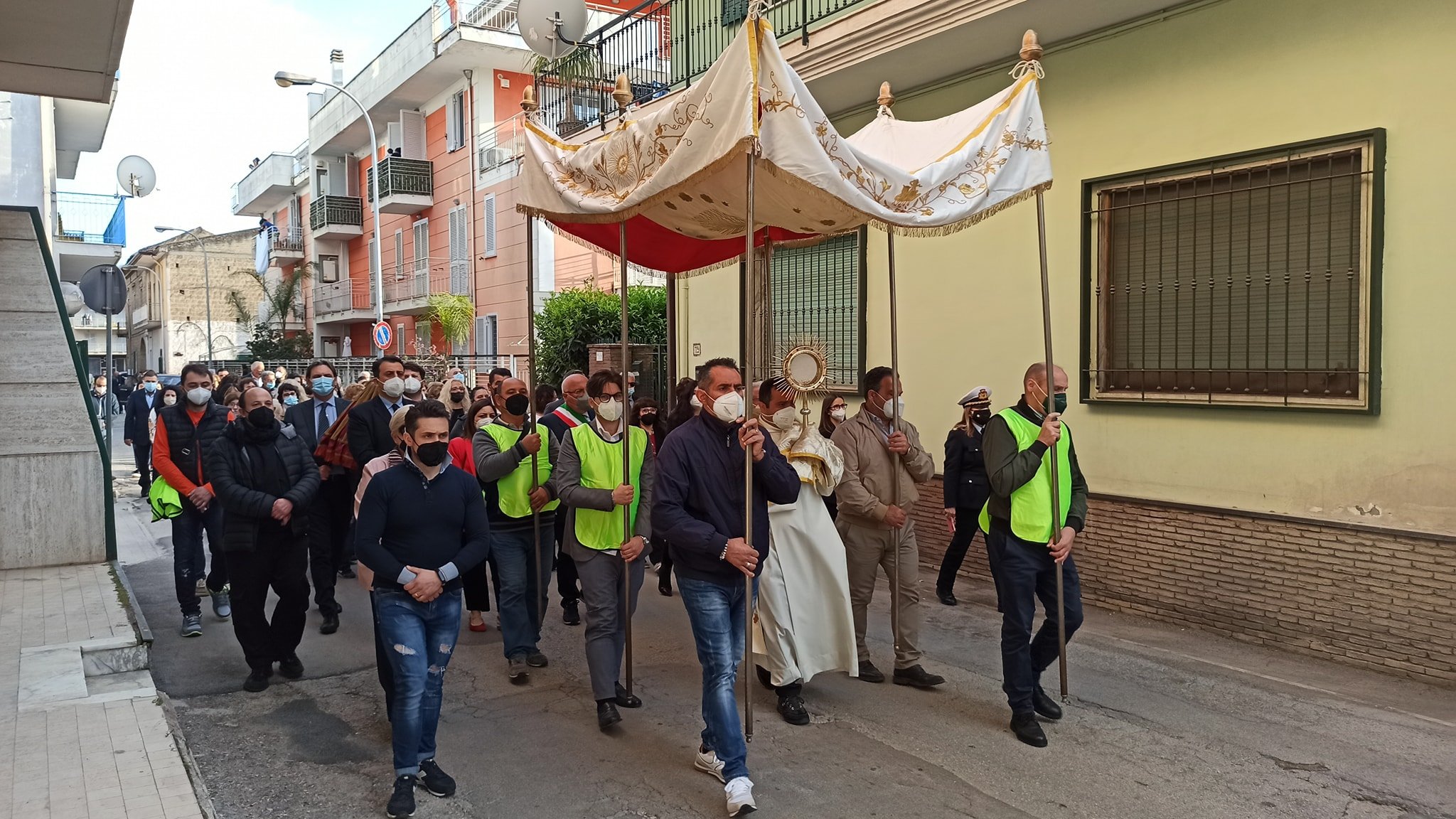 L'Amministrazione comunale guidata dal sindaco Antonello Velardi, insieme a centinaia di fedeli, ha seguito la processione terminata nel cortile dell'Istituto 'Gaetano Cecere" delle Suore Vocazioniste dove c'è stato un momento di riflessione in previsione della imminente beatificazione di Don Giustino Russolillo, fondatore della Congregazione religiosa dei Vocazionisti.