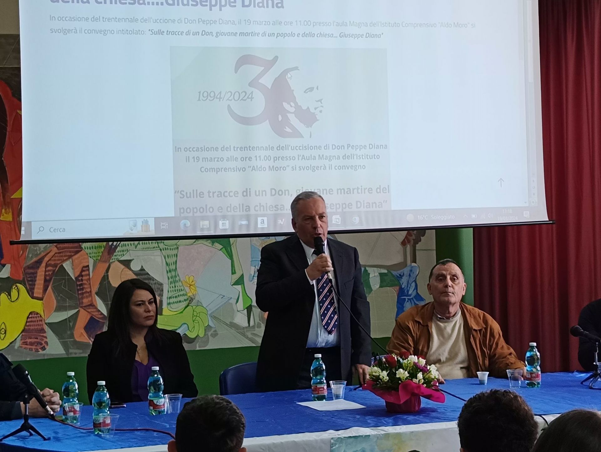 Questa mattina il sindaco Antonio Trombetta e l'assessore alla Pubblica Istruzione Francesca Cicchella hanno portato il saluto dell'Amministrazione comunale al convegno promosso dall'Istituto comprensivo Aldo Moro sul tema della Legalità, organizzato in occasione della ricorrenza del trentennale dell'omicidio di Don Peppino Diana, sacerdote della Chiesa di San Nicola di Bari di Casal di Principe, barbaramente ucciso dalla camorra mentre si stava preparando in sacrestia per celebrare messa, indossando i paramenti sacri.