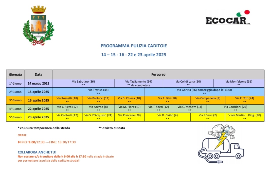 - la pulizia manuale o idrodinamica di pozzetti, caditoie e griglie stradali di ogni tipo e dimensione presenti sul territorio comunale.