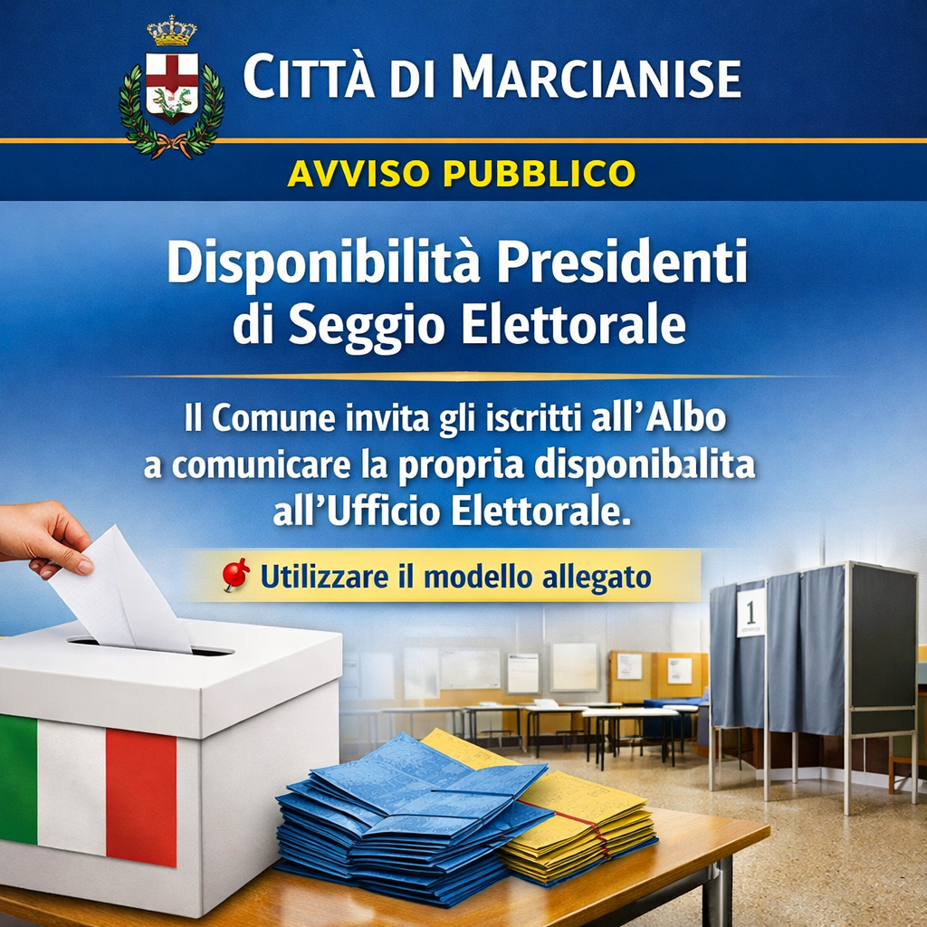 i cittadini iscritti all’Albo delle persone idonee all’ufficio di Presidente di seggio elettorale, che siano disponibili ad assumere l’incarico in occasione delle prossime consultazioni, a comunicare la propria disponibilità all’Ufficio Elettorale del Comune di Marcianise.