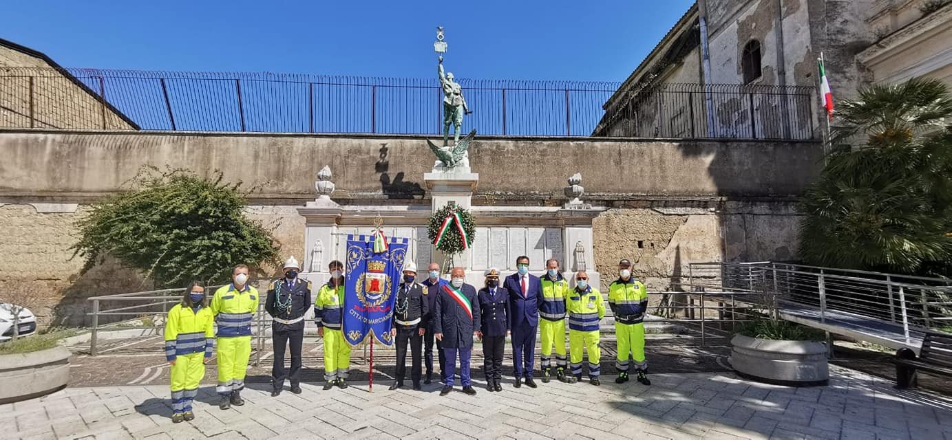 76° Anniversario della Liberazione d'Italia. Deposta la corona d'alloro al Monumento ai caduti di Piazza O. Buccini.