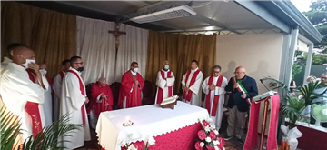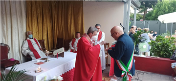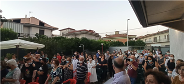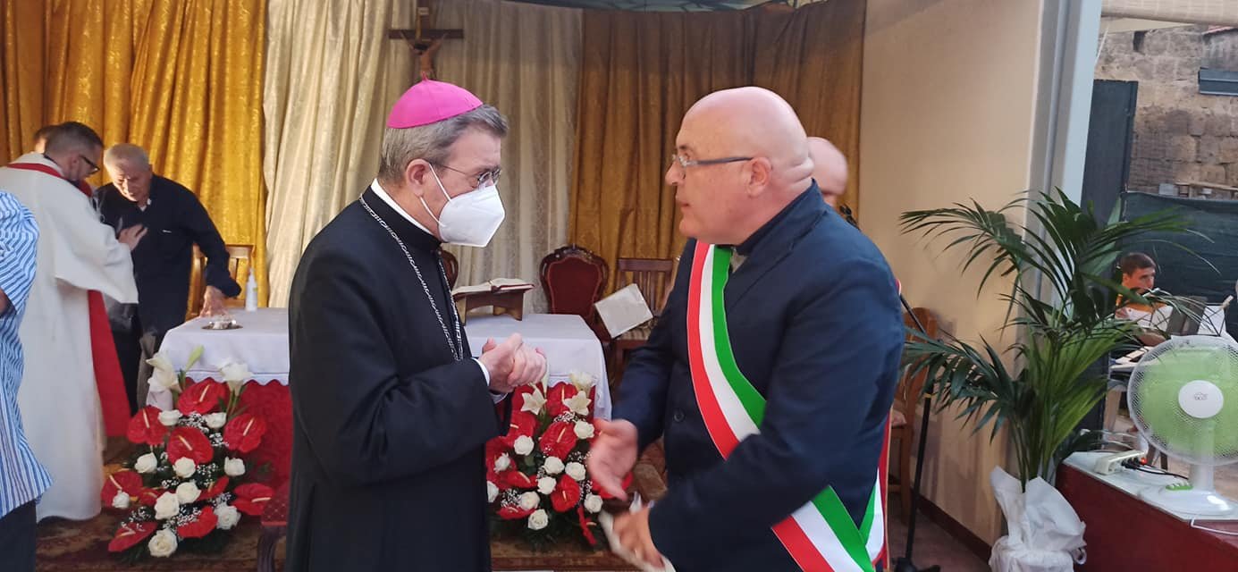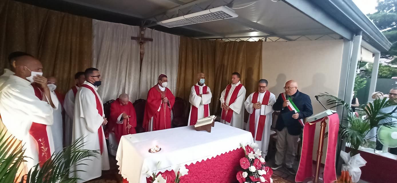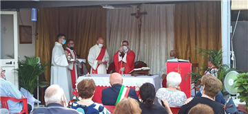 A celebrare la messa nel cortile della sua abitazione in via Romaniello a Marcianise S.E. Monsignor Salvatore Visco, Arcivescovo di Capua, con diversi sacerdoti, alla presenza di centinaia di parrocchiani e cittadini.