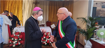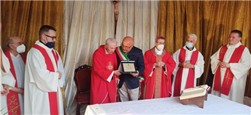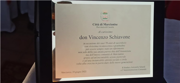 Il sindaco Antonello Velardi ha consegnato una targa di riconoscimento in rappresentanza dell'Amministrazione Comunale al carissimo don Vincenzo con vivissima riconoscenza e gratitudine per la sua encomiabile azione pastorale e per l'instancabile attività sociale e civile, volta alla crescita in particolare delle nuove generazioni, portata avanti negli anni del suo sacerdozio.