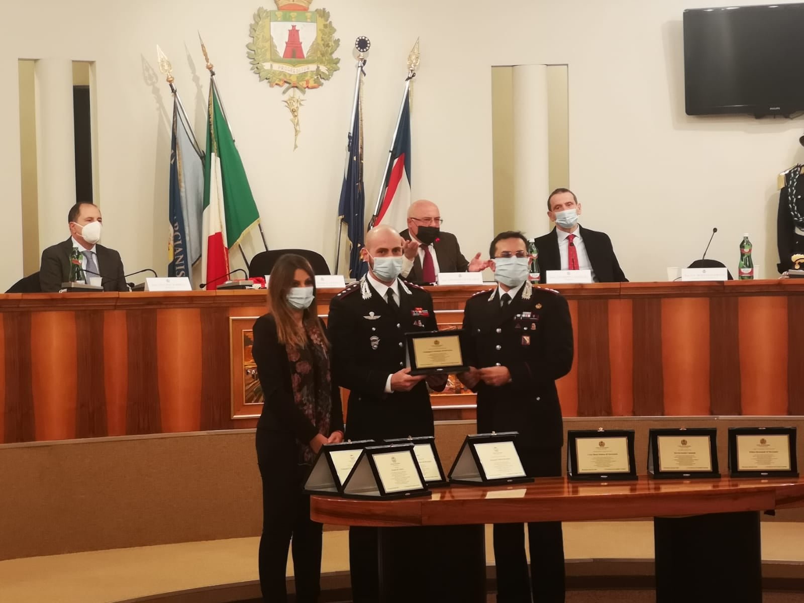 Nell'aula consiliare del Comune di Marcianise si è svolta la cerimonia di consegna degli attestati in segno di ringraziamento a tutte le istituzioni che hanno operato "con particolare dedizione", e stanno ancora operando, per fronteggiare l'emergenza coronavirus.