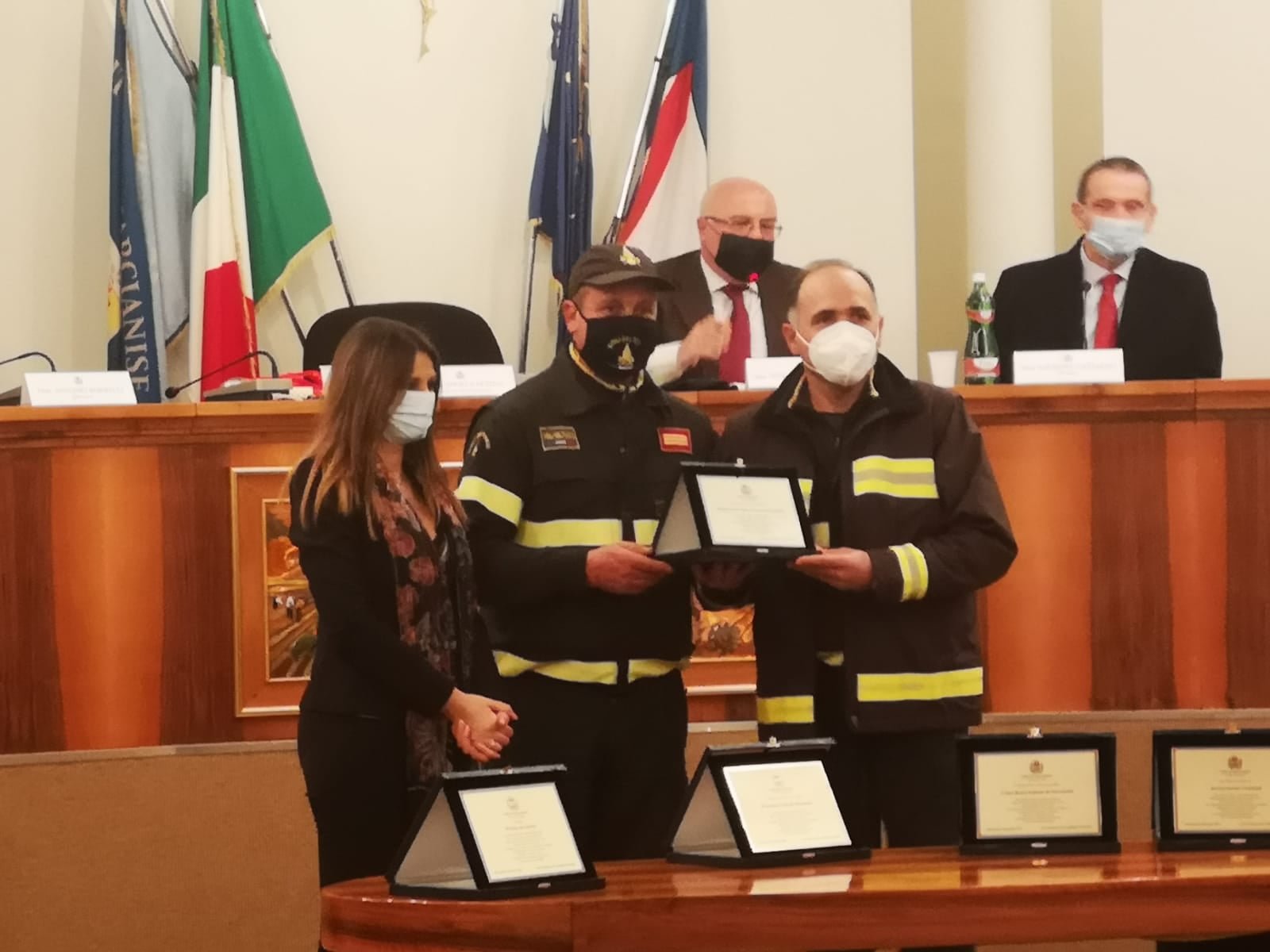 Una targa è stata consegnata anche al responsabile del distaccamento di Marcianise dei Vigili del Fuoco, caporeparto Furio Valentino (presente anche, per il comando provinciale, il caporeparto Michele Mezzacapo), ai rappresentanti del Nucleo comunale della Protezione Civile, Claudio Bucciero, e della sezione locale della Croce Rossa Italiana Vincenzo Moretta, al comandante della Polizia Municipale, capitano Giuseppe Fedele, e alla responsabile dei servizi sociali comunali e dell'Ambito dott.ssa Franca Nubifero.