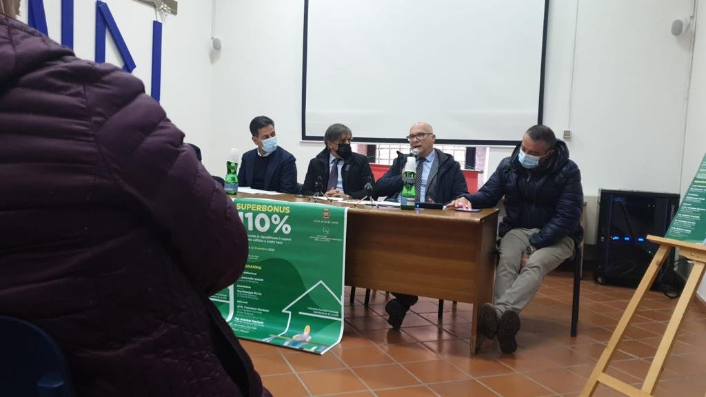 Sono intervenuti: Francesco Giordano, vicepresidente nazionale dell’istituto Casacerta, Anacleto Fuschetti, dirigente dell’Ufficio Tecnico del Comune di Marcianise, Domenico Moriello, presidente della commissione consiliare Lavori Pubblici, Raffaele Cecoro, che ha delineato lo scenario futuro relativamente alla possibile proroga del Superbonus fino al 2024.