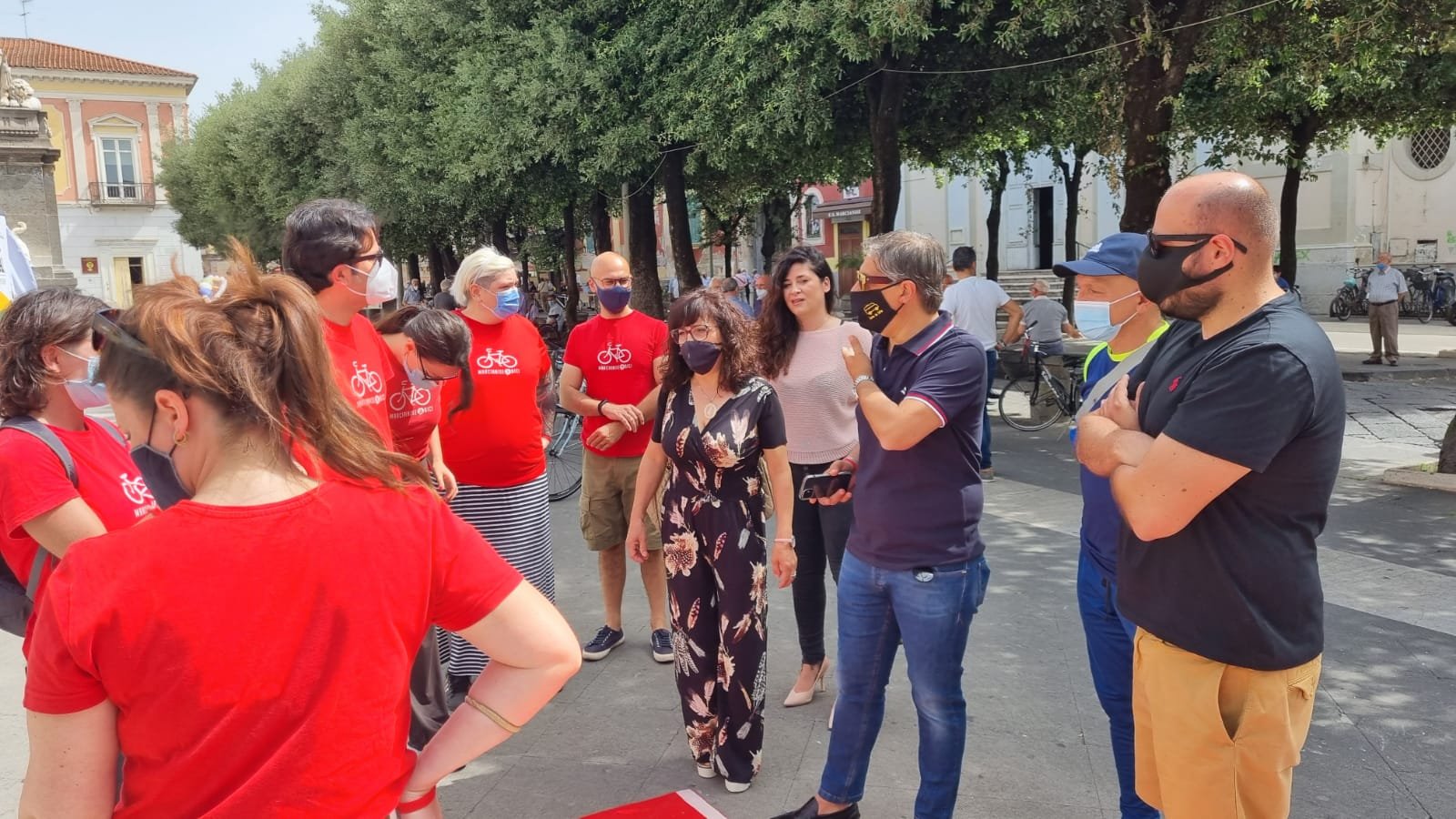 20 GIUGNO 2021 - Appuntamento in Piazza Umberto I con l’associazione 'Marcianiseinbici' tra biciclette, rastrelliere e simulazione di una pista ciclabile per lanciare un messaggio: la bicicletta è al centro della mobilità sostenibile.