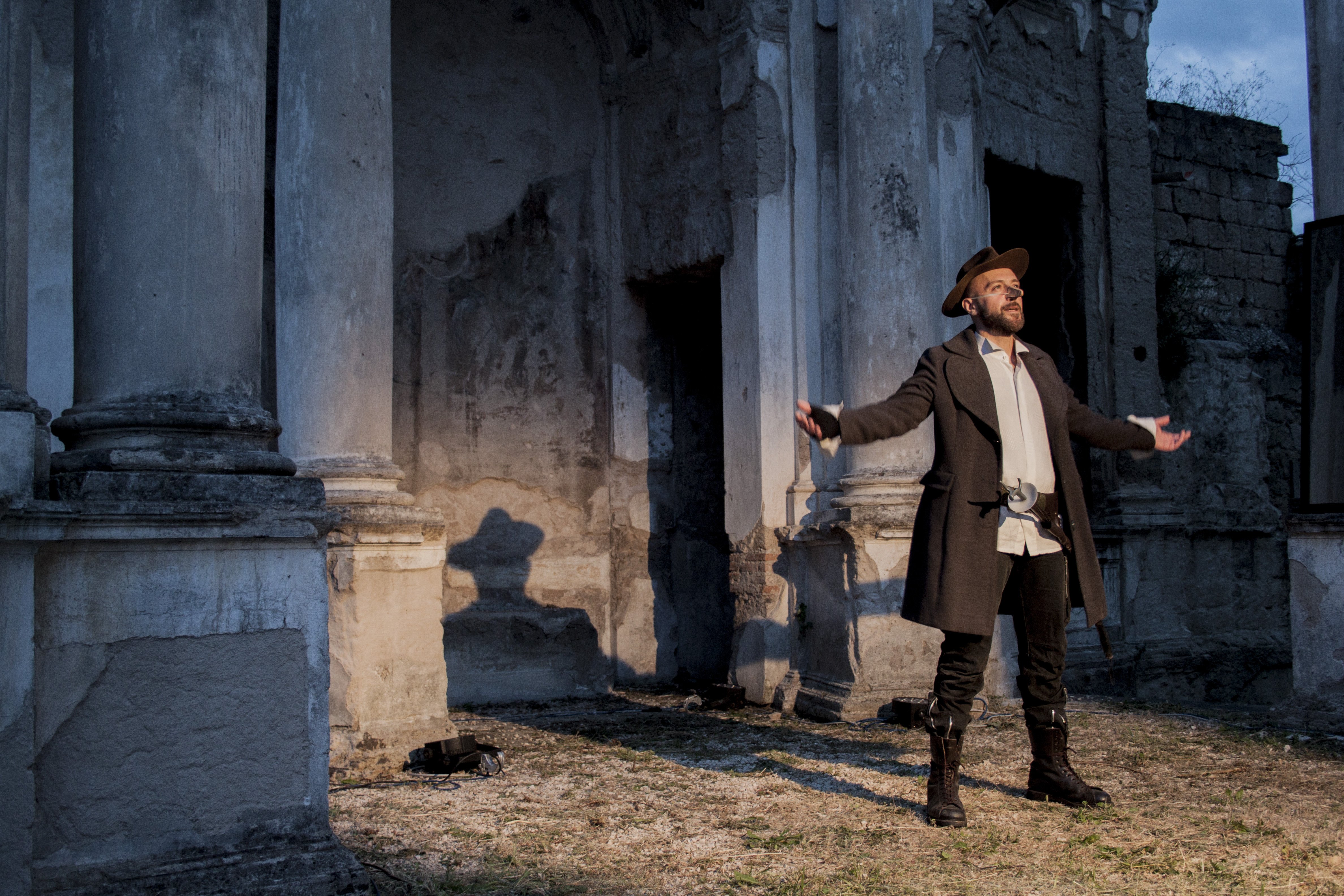 Raffaele Patti che ha portato in scena l’opera dal titolo “Cyrano - unplugged in Esedra” riportando alla luce i resti architettonici dell’Esedra di Palazzo Novelli, il suggestivo teatro a cielo aperto risalente al XVIII secolo.