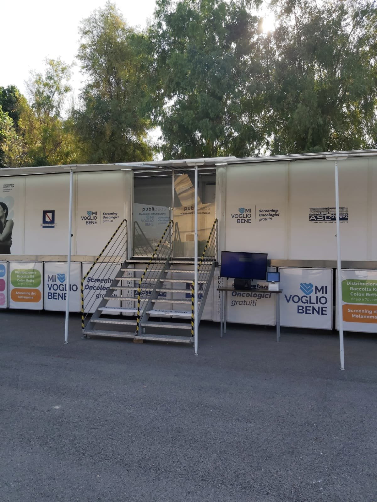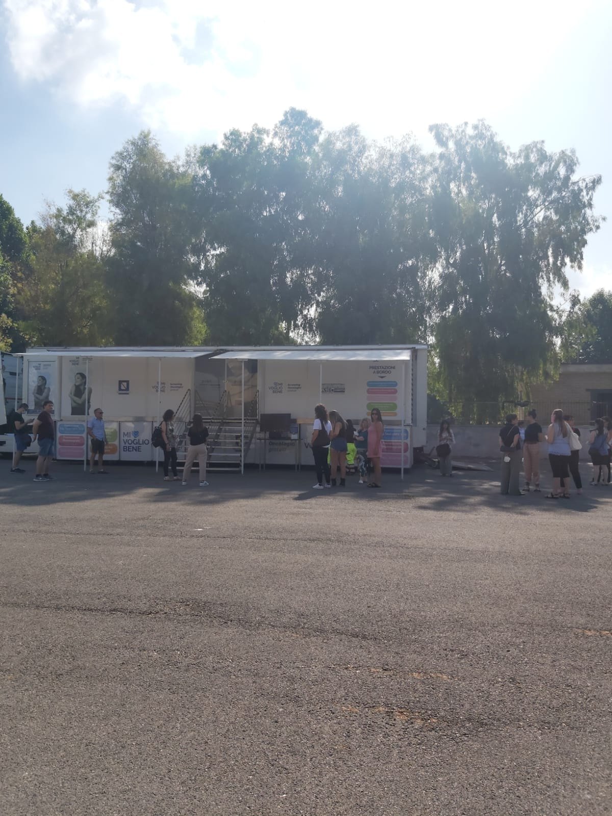 Centinaia di cittadini si stanno recando presso la struttura mobile allestita dinanzi al parco per sottoporsi alle visite mediche gratuite.