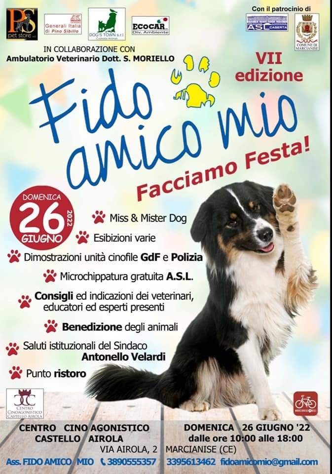 Una giornataa all'insegna dei valori della tutela dell'ambiente e degli animali domenica 26 giugno presso il centro cino-agonostico del Castello di Airola della famiglia Fretta, organizzata dall'associazione "Fido Amico Mio" con il patrocinio dell'Amministrazione Comunale guidata dal sindaco Antonello Velardi.