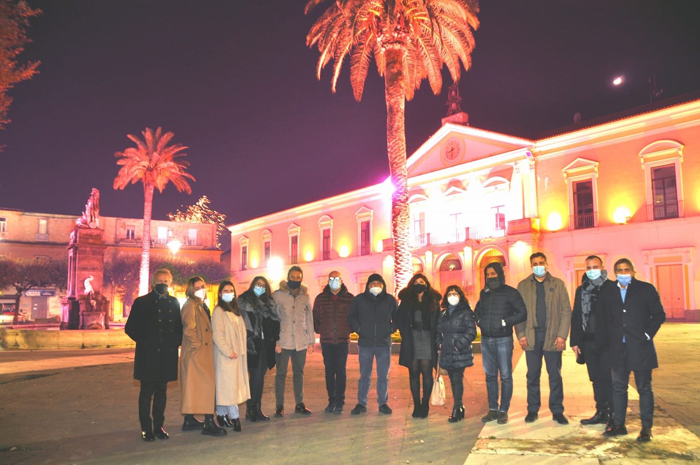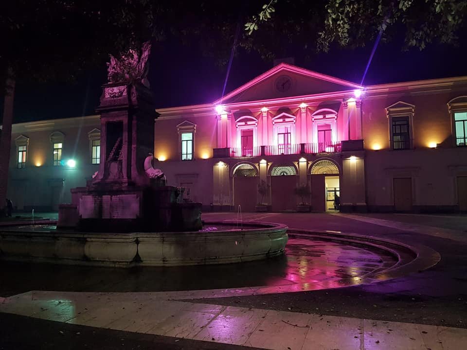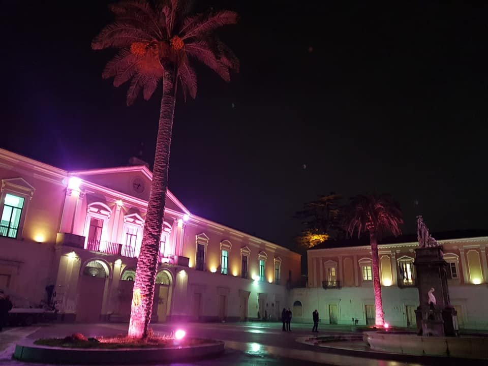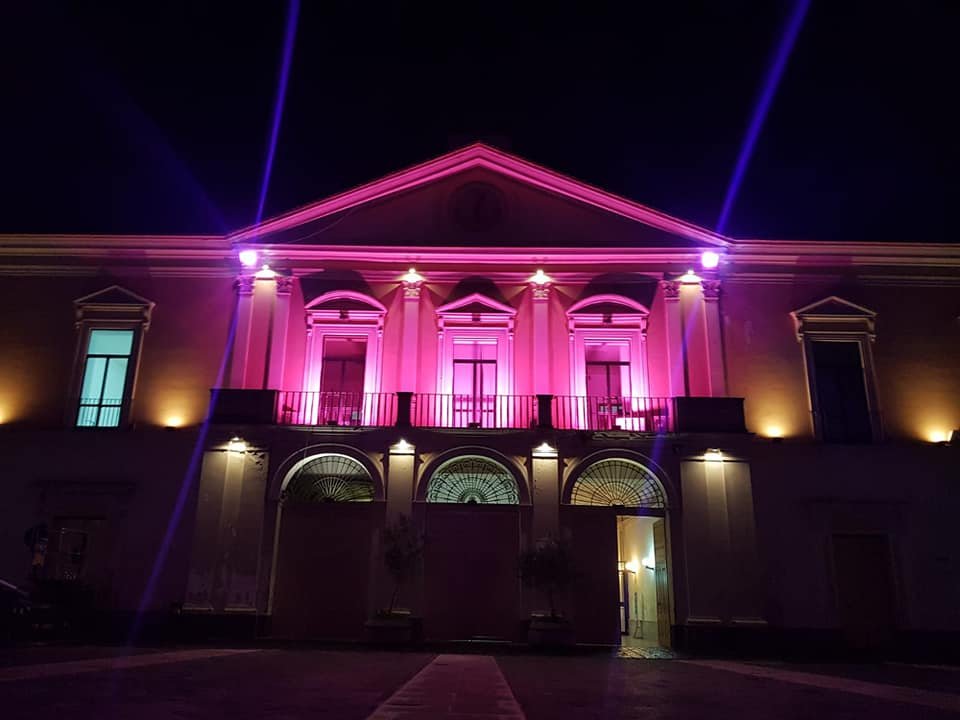 16 GENNAIO 2021 - E' stata colorata di rosa la facciata del municipio in Piazza Umberto I, a supporto della candidatura dell'isola di Procida a Capitale della Cultura.
