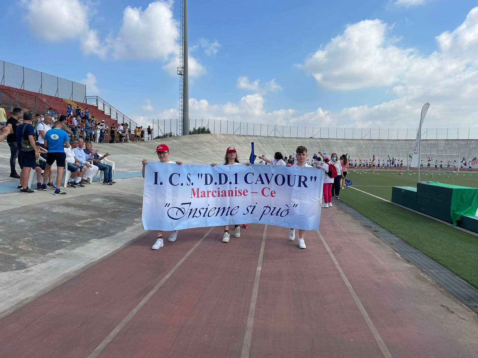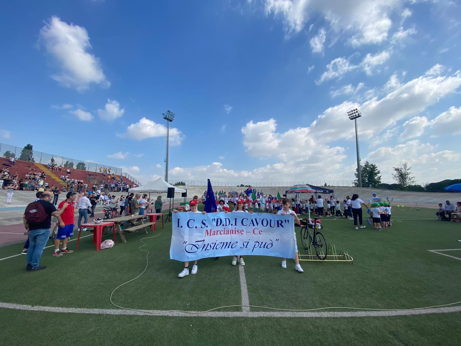 La manifestazione è partita da Piazzale Aldo Moro ed è proseguita verso Piazza Umberto I, dove c’è stata una breve sosta, per poi raggiungere il Velodromo dove gli alunni delle quinte classi della scuola primaria, i bambini della scuola dell’Infanzia e il corpo Majorette della Scuola secondaria di I° grado si sono esibiti in performance canore e danzanti per salutare, insieme al Dirigente Aldo Improta, al personale scolastico, ai rappresentanti dell’Amministrazione Comunale, gli Assessori Giovanna Cirillo, Giuseppe Golino e Giovanna Iadicicco, alle Associazioni e ai genitori, la fine dell’anno scolastico.