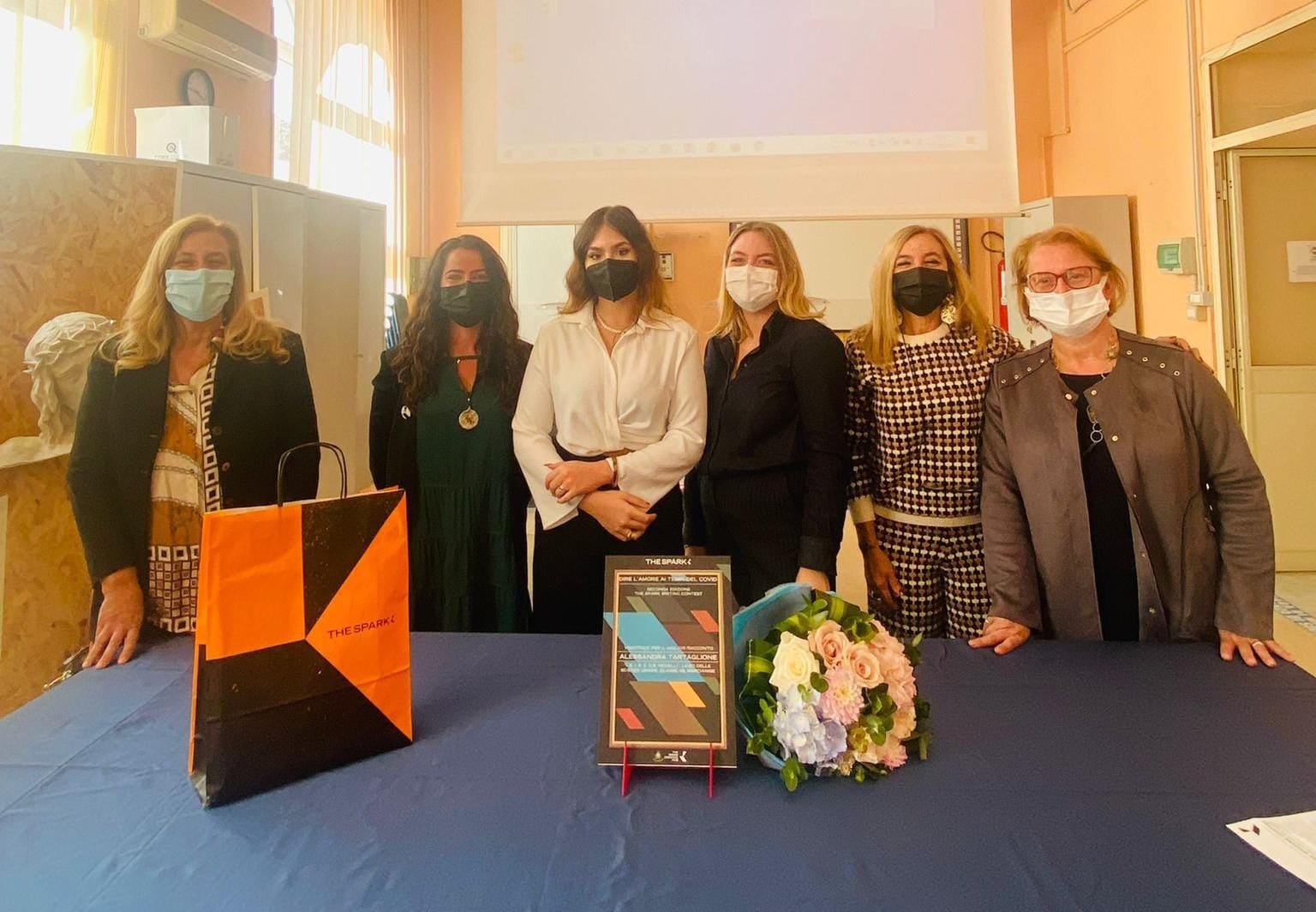 Alla cerimonia di premiazione hanno partecipato l’Assessore alla Cultura e Pubblica Istruzione, Federica Porzio, Michela Musto, proprietaria di The Spark Creative Hub, la dirigente scolastica Emma Marchitto, insieme alle professoresse Caterina Vesta e Anna Cristina Campofreda.