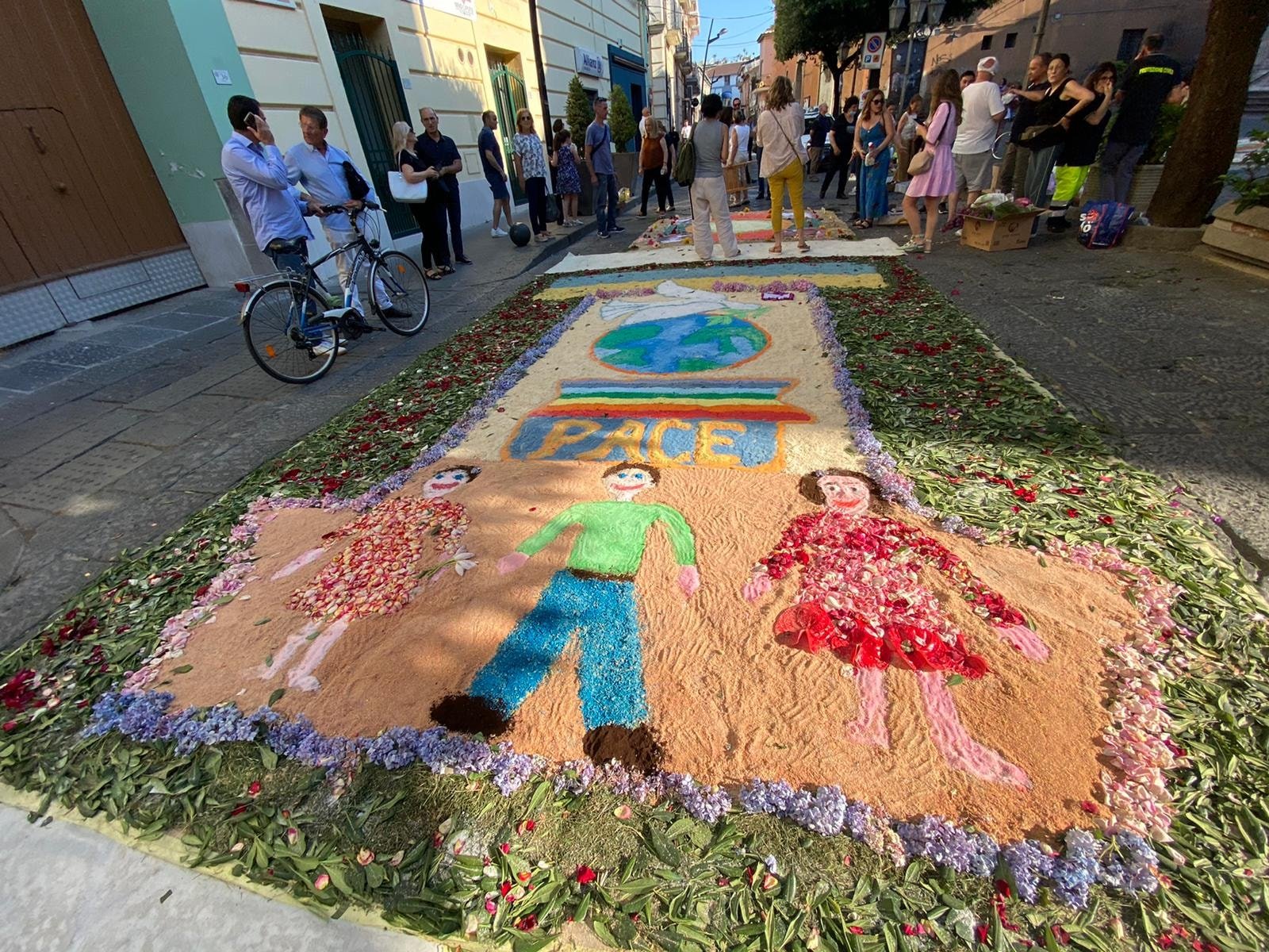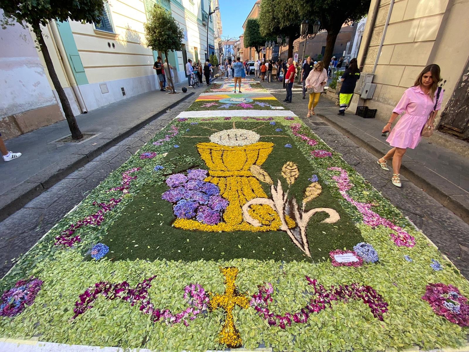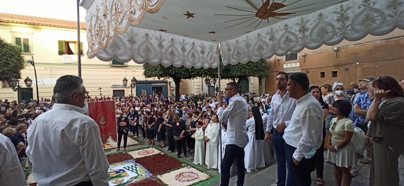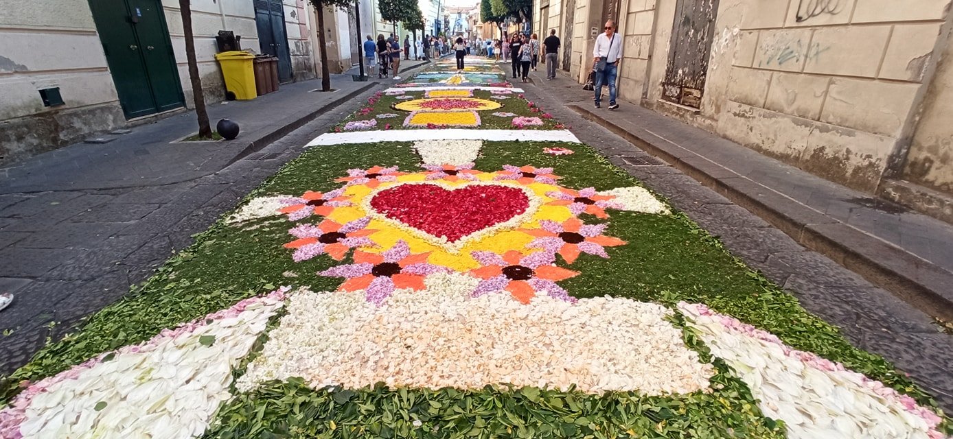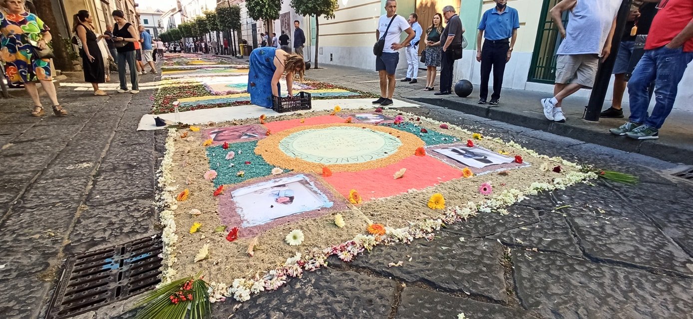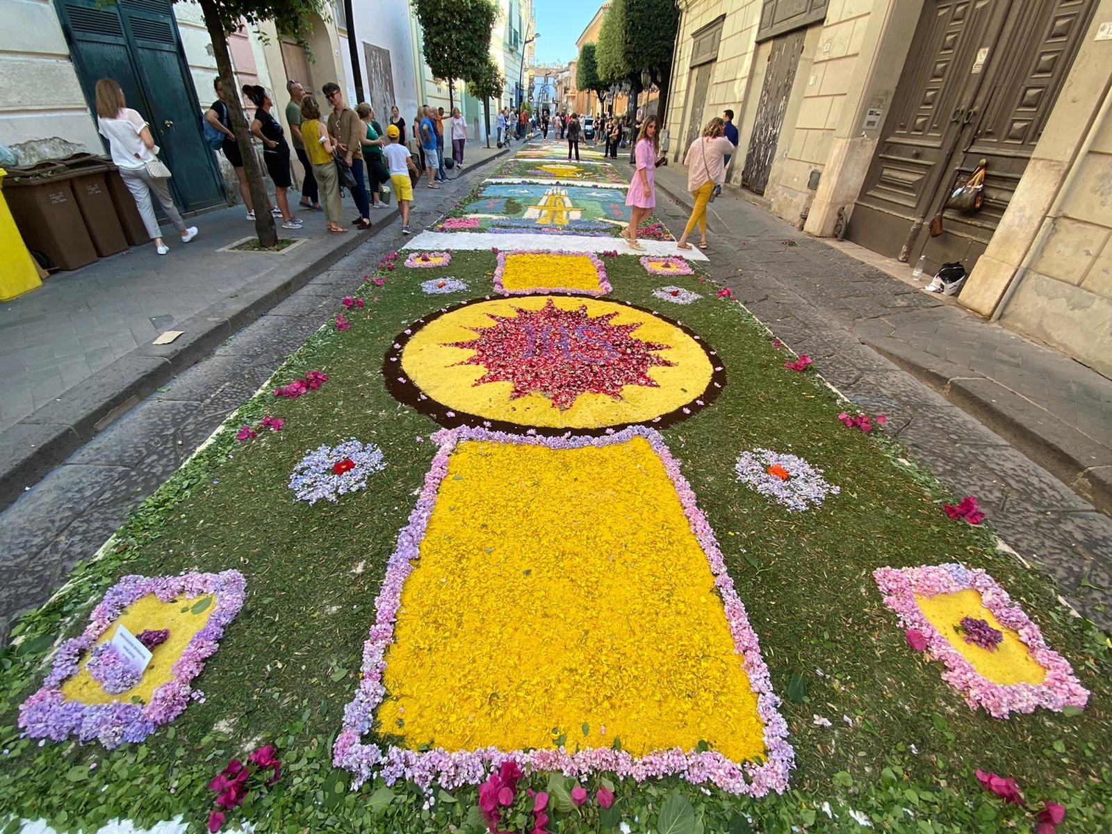 Ad arricchire la cerimonia la splendida infiorata sul sagrato del Duomo e lungo la stessa via Duomo, promossa da associazioni, istituti scolastici e singoli artisti locali.