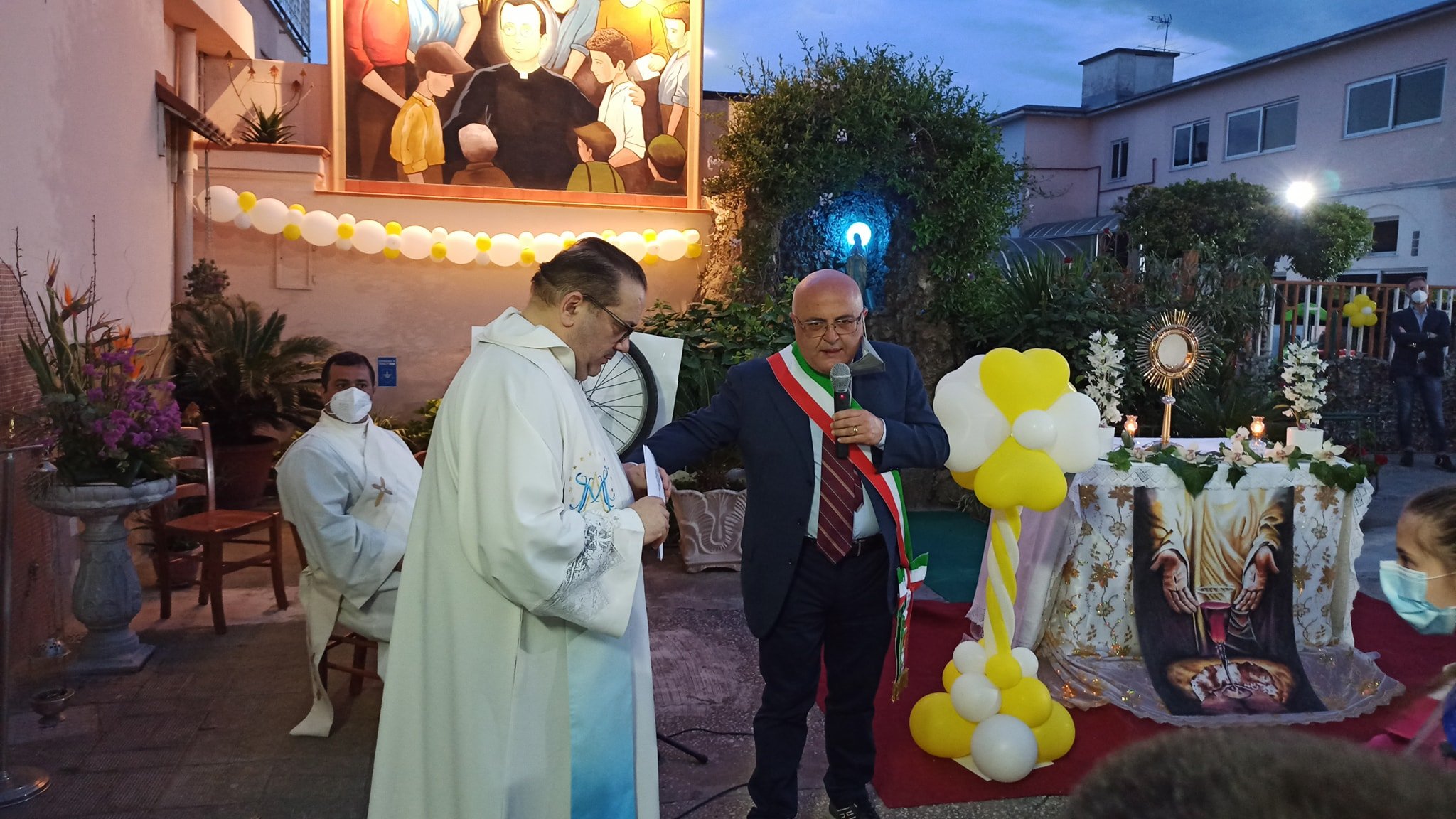 L'Amministrazione comunale guidata dal sindaco Antonello Velardi, insieme a centinaia di fedeli, ha seguito la processione terminata nel cortile dell'Istituto 'Gaetano Cecere" delle Suore Vocazioniste dove c'è stato un momento di riflessione in previsione della imminente beatificazione di Don Giustino Russolillo, fondatore della Congregazione religiosa dei Vocazionisti.